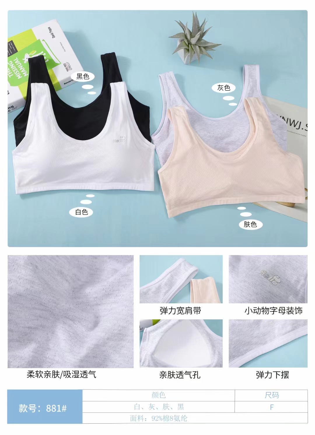 초등학생 조끼 고정컵 여중생 고교생 면화 파일 브래지어 소녀 통기성 속옷 개발