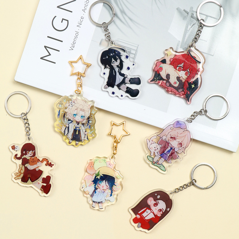 투명 아크릴 키 체인 DIY 창조적 인 애니메이션 주변 만화 캐릭터 펜던트 스타 휴머노이드 서 카드 도매스토어 가기