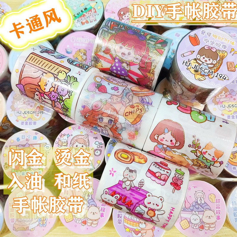 그리고 종이 테이프 특수 오일 플래시 골드 핸드 계정 테이프 DIY 스티커 캐릭터 만화 핸드 계정 재료 브론징 테이프 도매스토어 가기