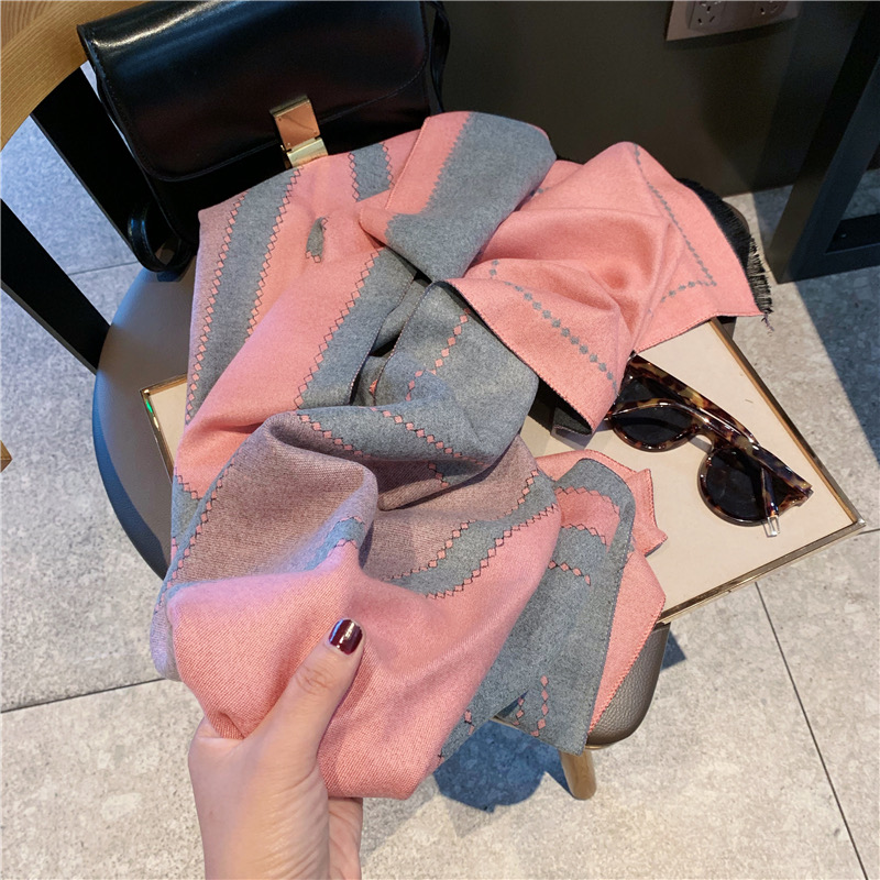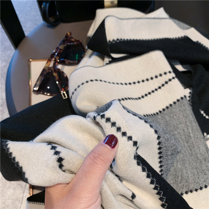 고중량 400g 한국 스카프 여성용 대형 목도리 가을과 겨울 두꺼운 따뜻한 양면 캐시미어 이중 목적 긴 스카프스토어 가기