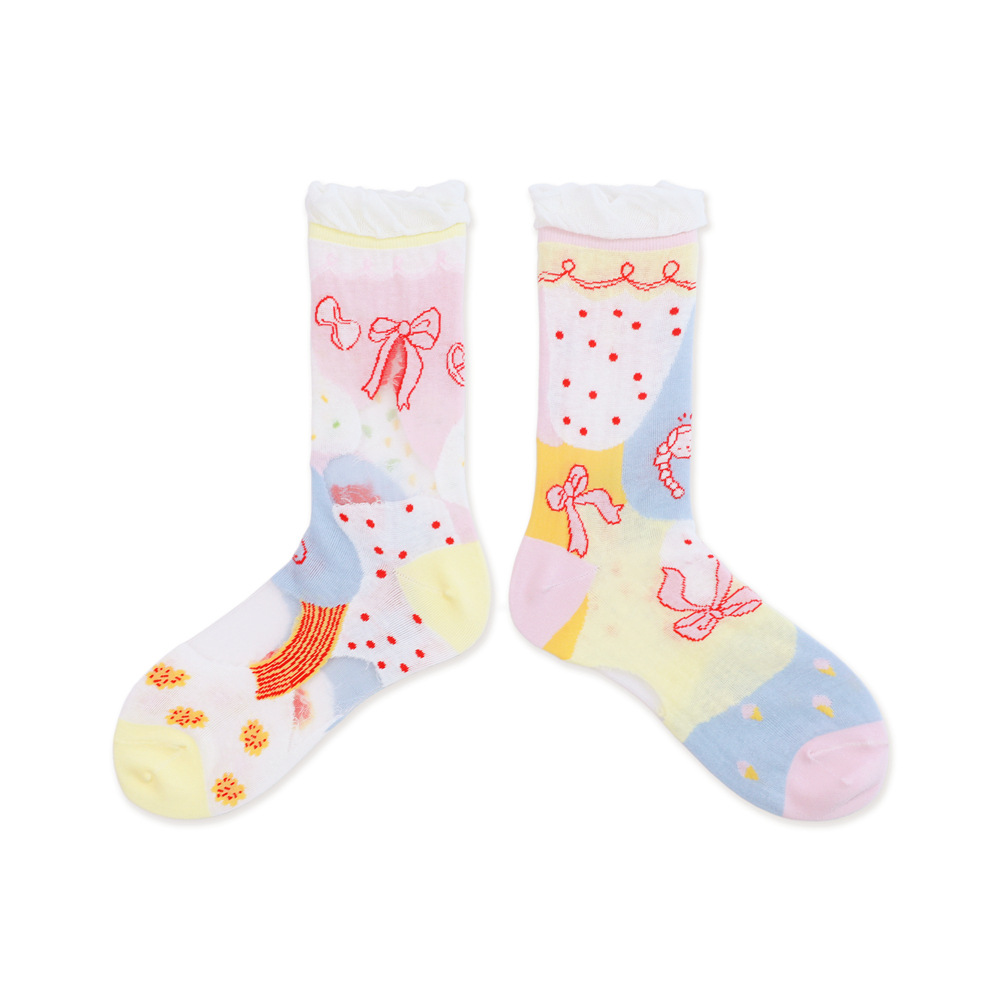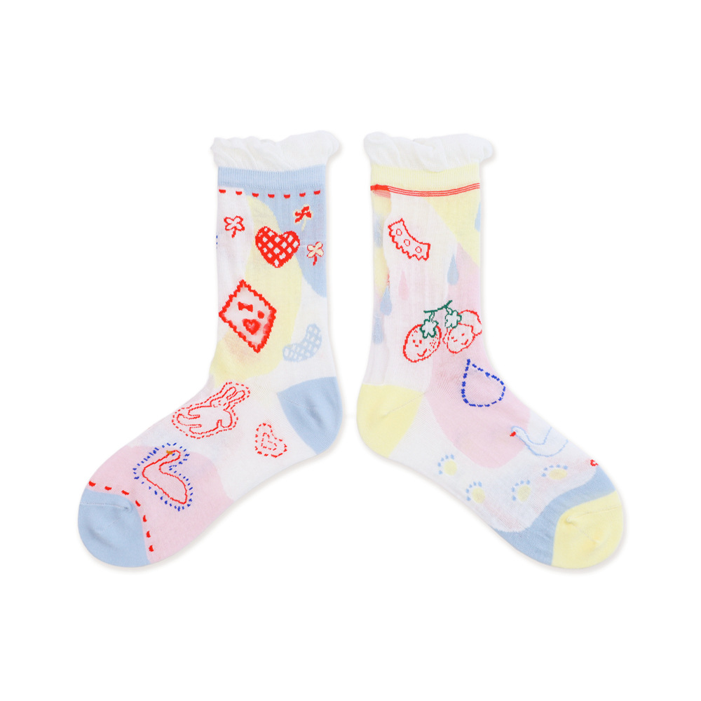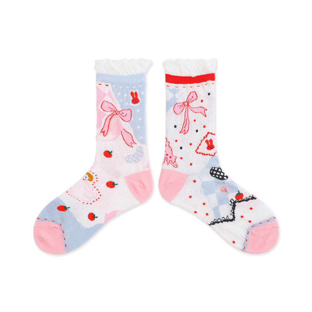 Bowknot 토끼 여름 카키 중공 나무 귀 귀여운 통기성 면 양말 얇은 스타킹 더미 양말스토어 가기
