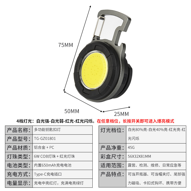 【产品特点】:可做开瓶器、帽夹灯、尾部强磁、卡扣式挂钩、便携方便