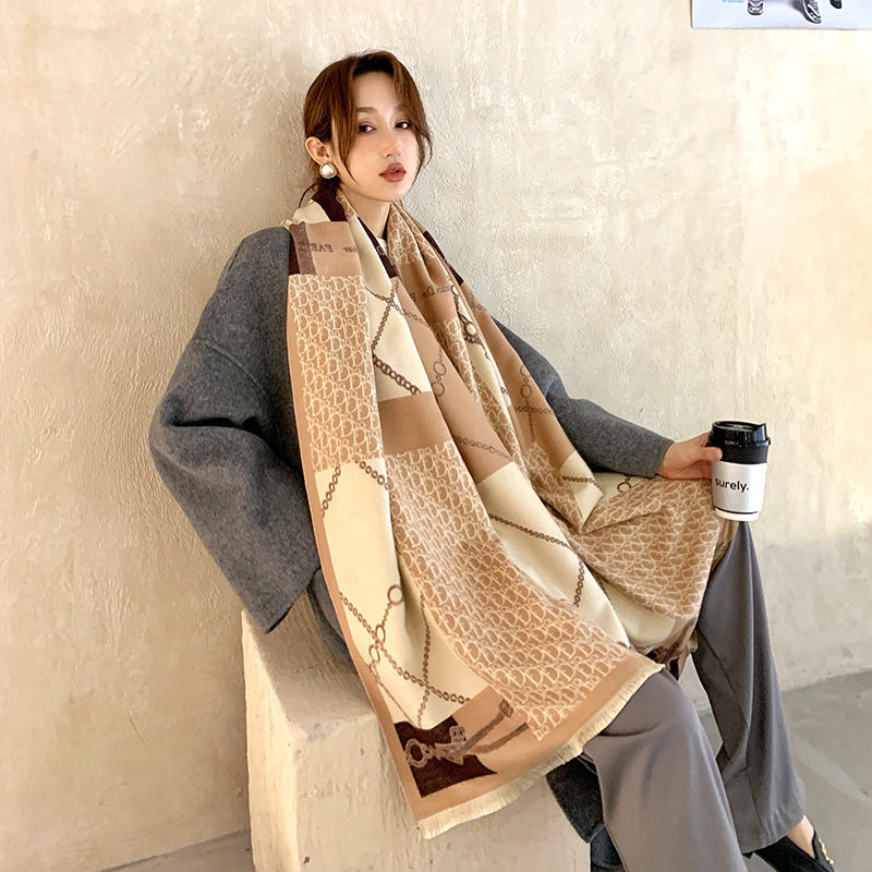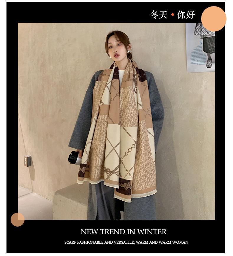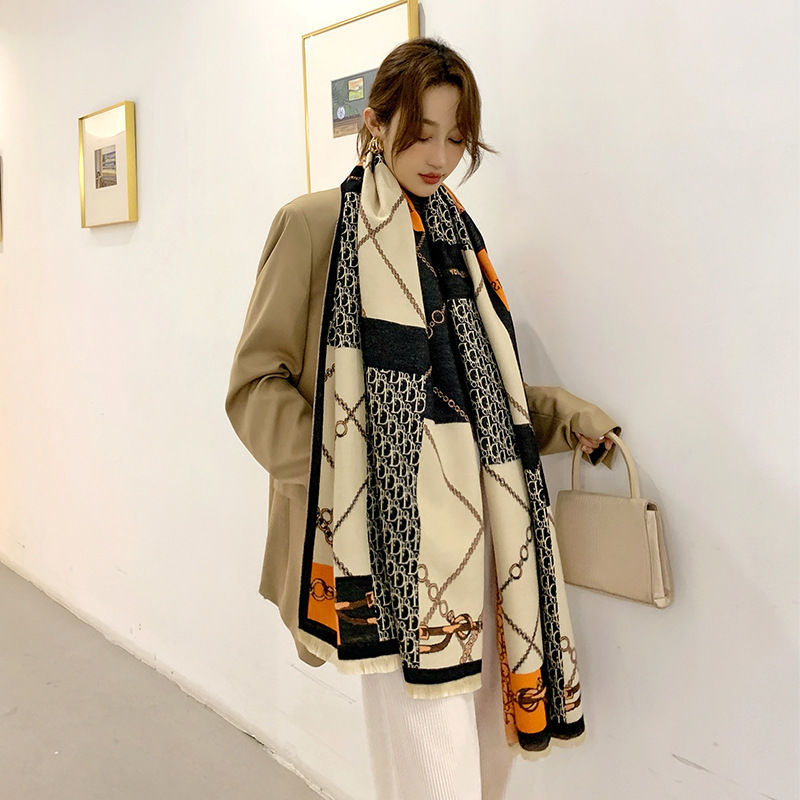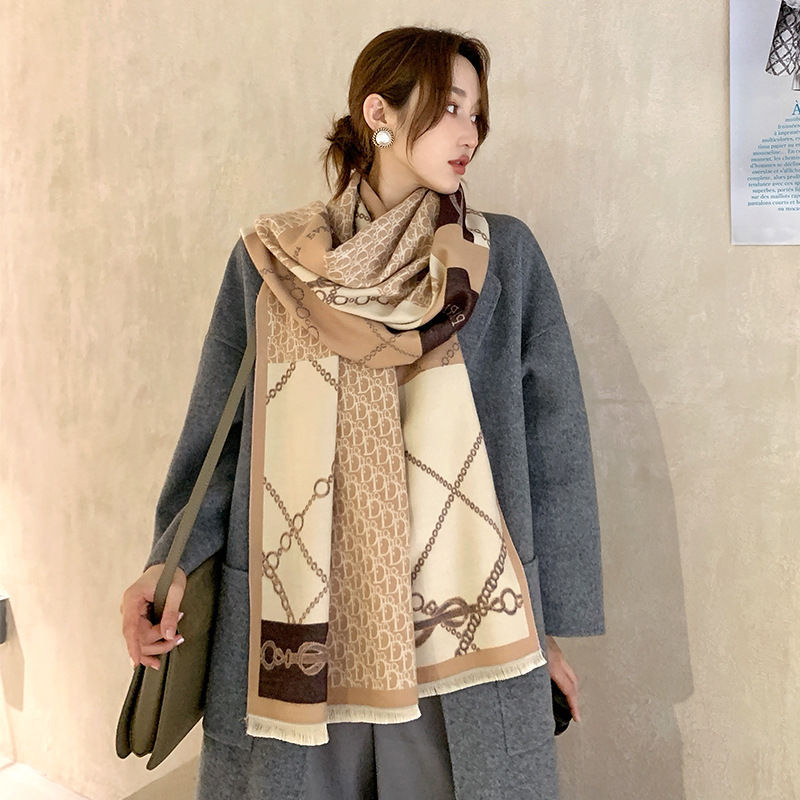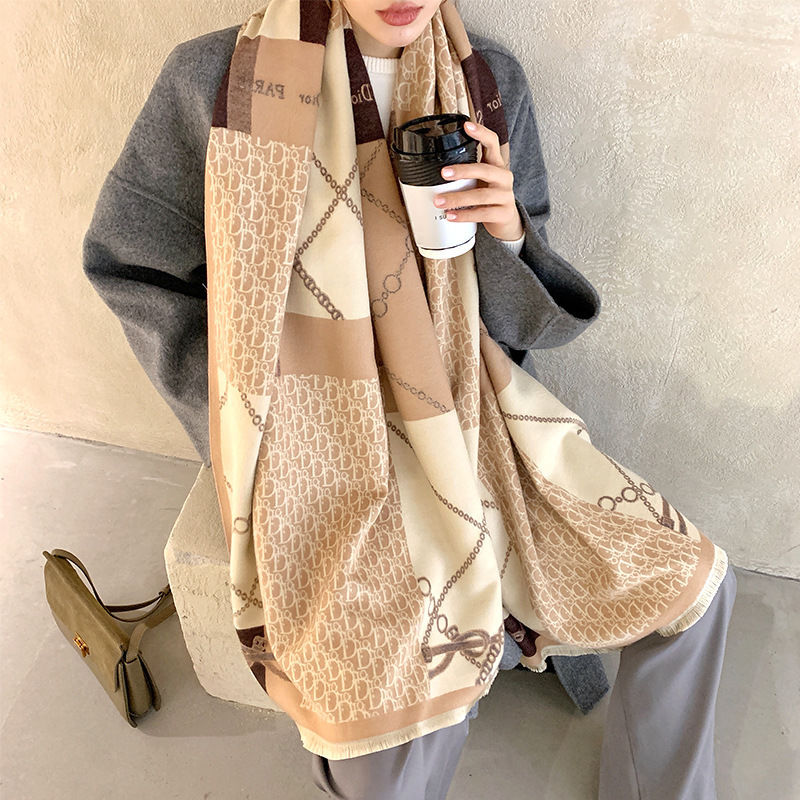 트렌디 브랜드 양면 모조 캐시미어 스카프 여성의 가을과 겨울 D 편지 긴 외부 포기 숄 따뜻한 두꺼운 이중 사용 스카프스토어 가기