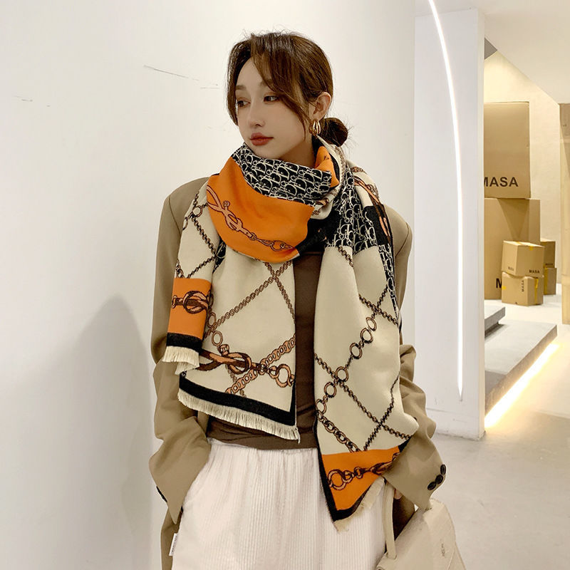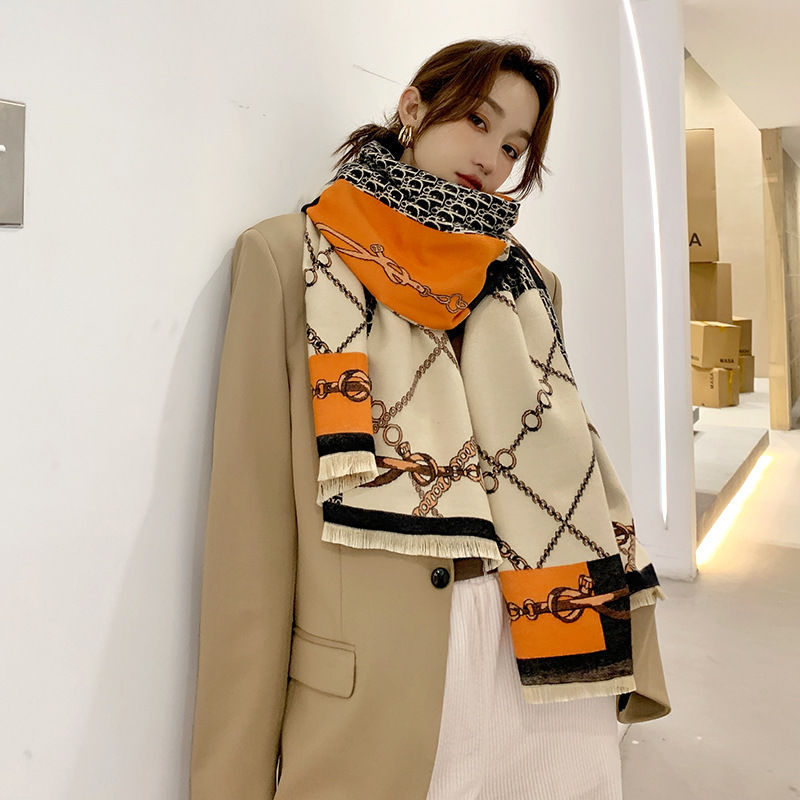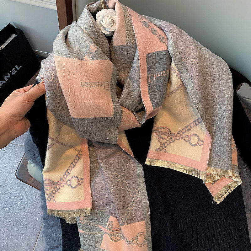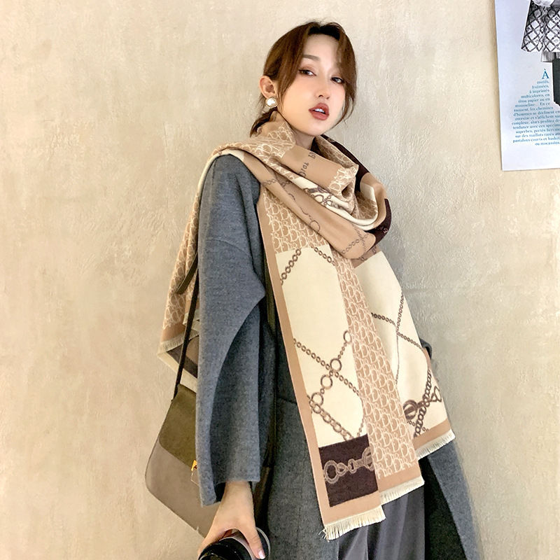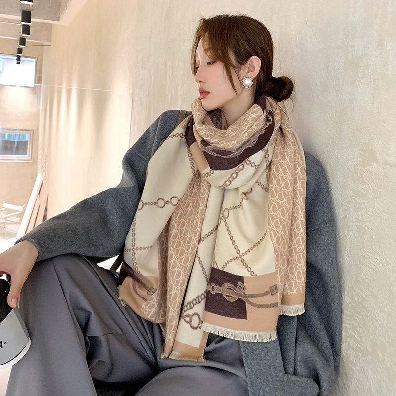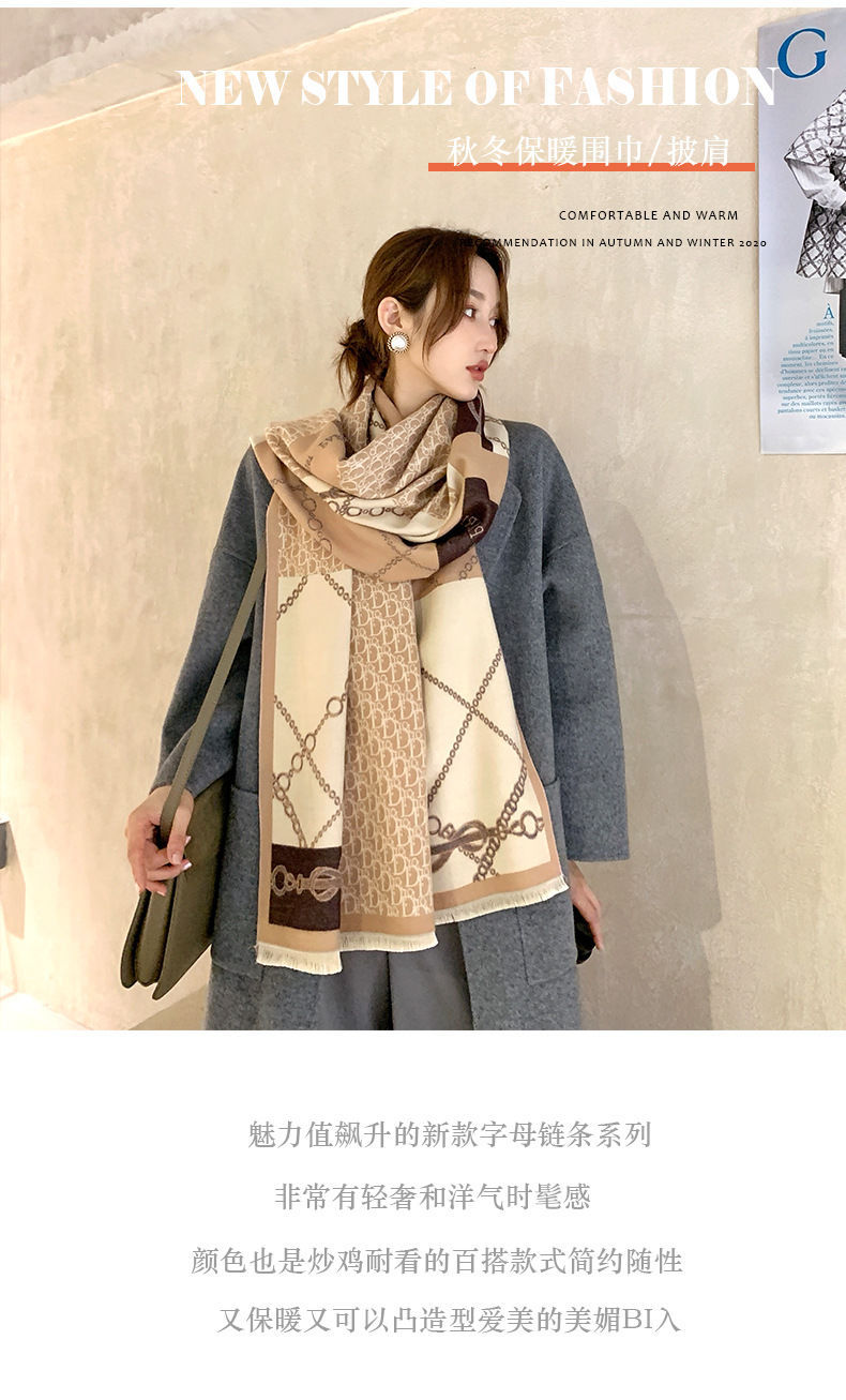 트렌디 브랜드 양면 모조 캐시미어 스카프 여성의 가을과 겨울 D 편지 긴 외부 포기 숄 따뜻한 두꺼운 이중 사용 스카프스토어 가기