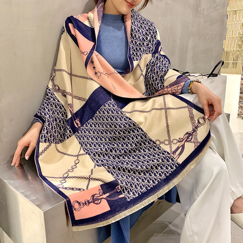 트렌디 브랜드 양면 모조 캐시미어 스카프 여성의 가을과 겨울 D 편지 긴 외부 포기 숄 따뜻한 두꺼운 이중 사용 스카프
