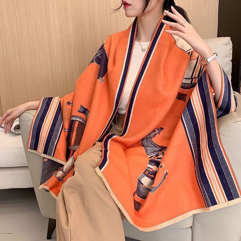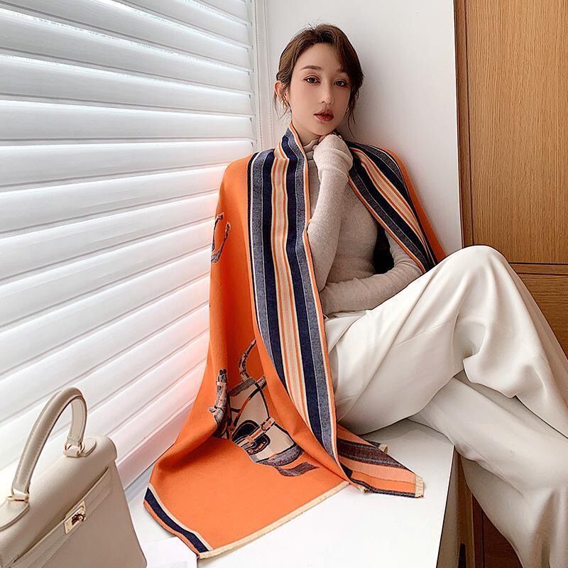유럽과 미국의 고급 울 캐시미어 스카프 겨울 여성용 이중 사용 긴 두꺼운 따뜻한 스카프 목도리 공장 도매스토어 가기