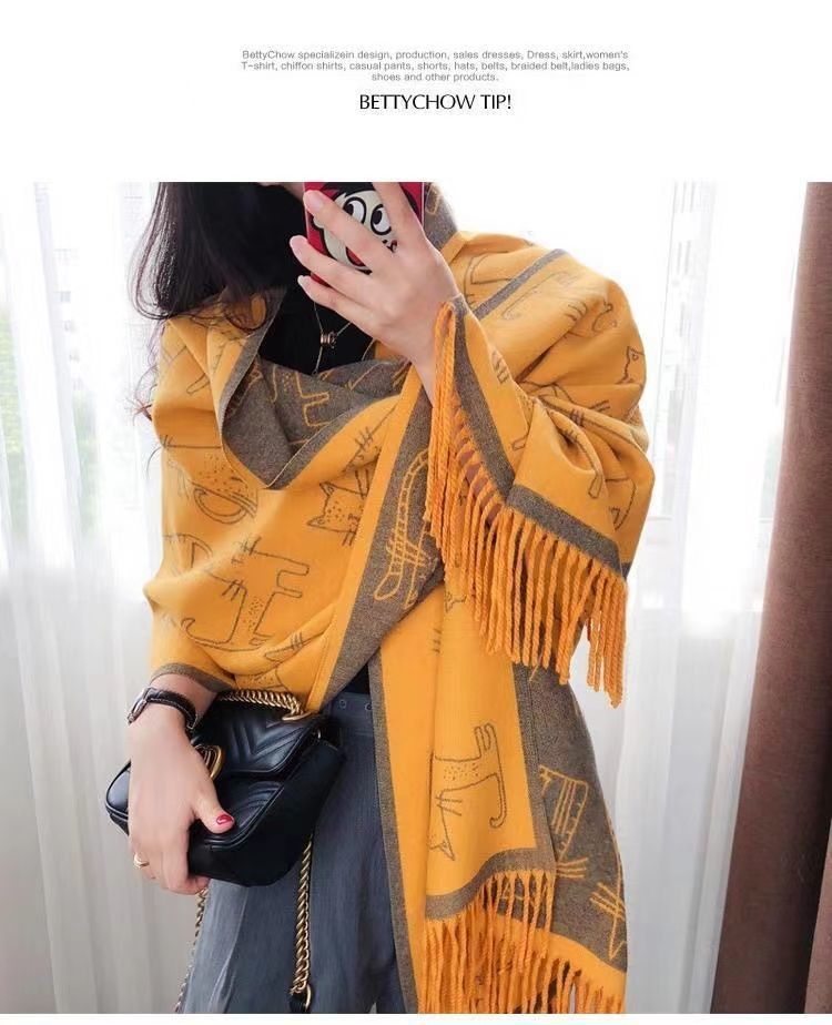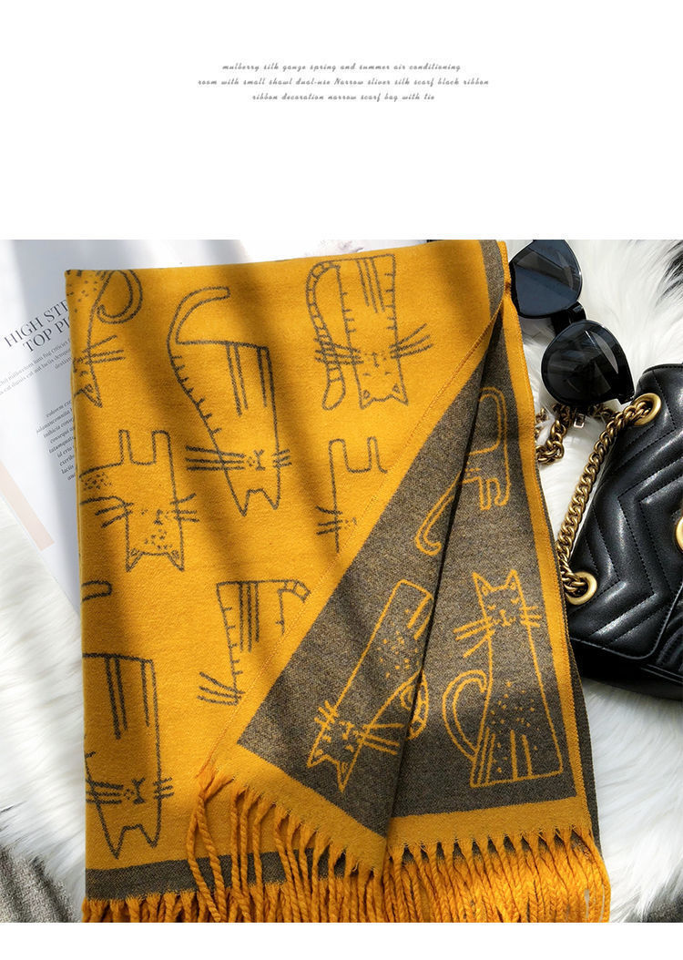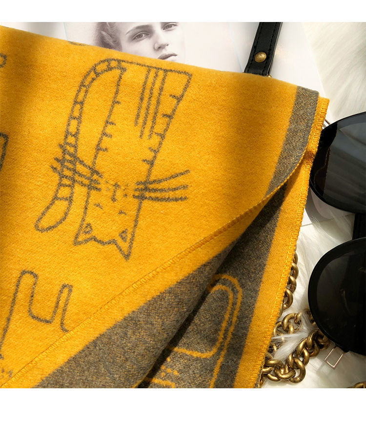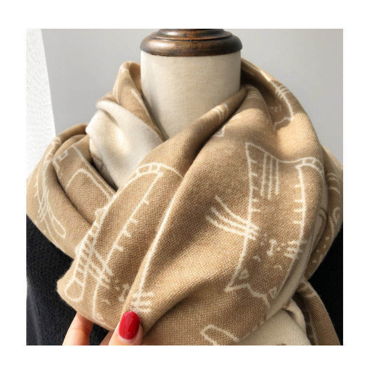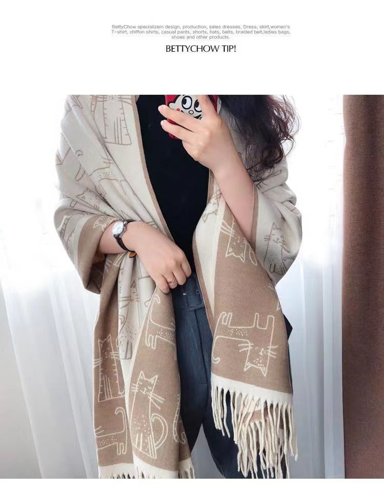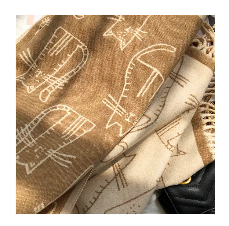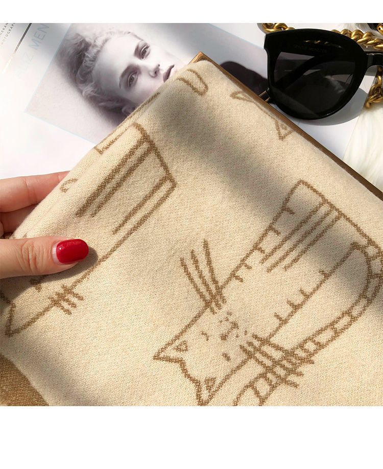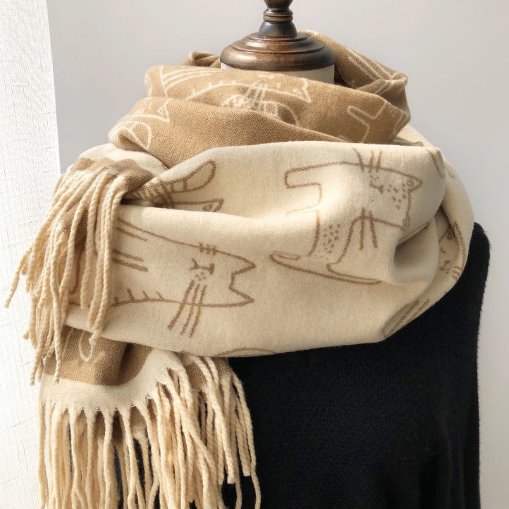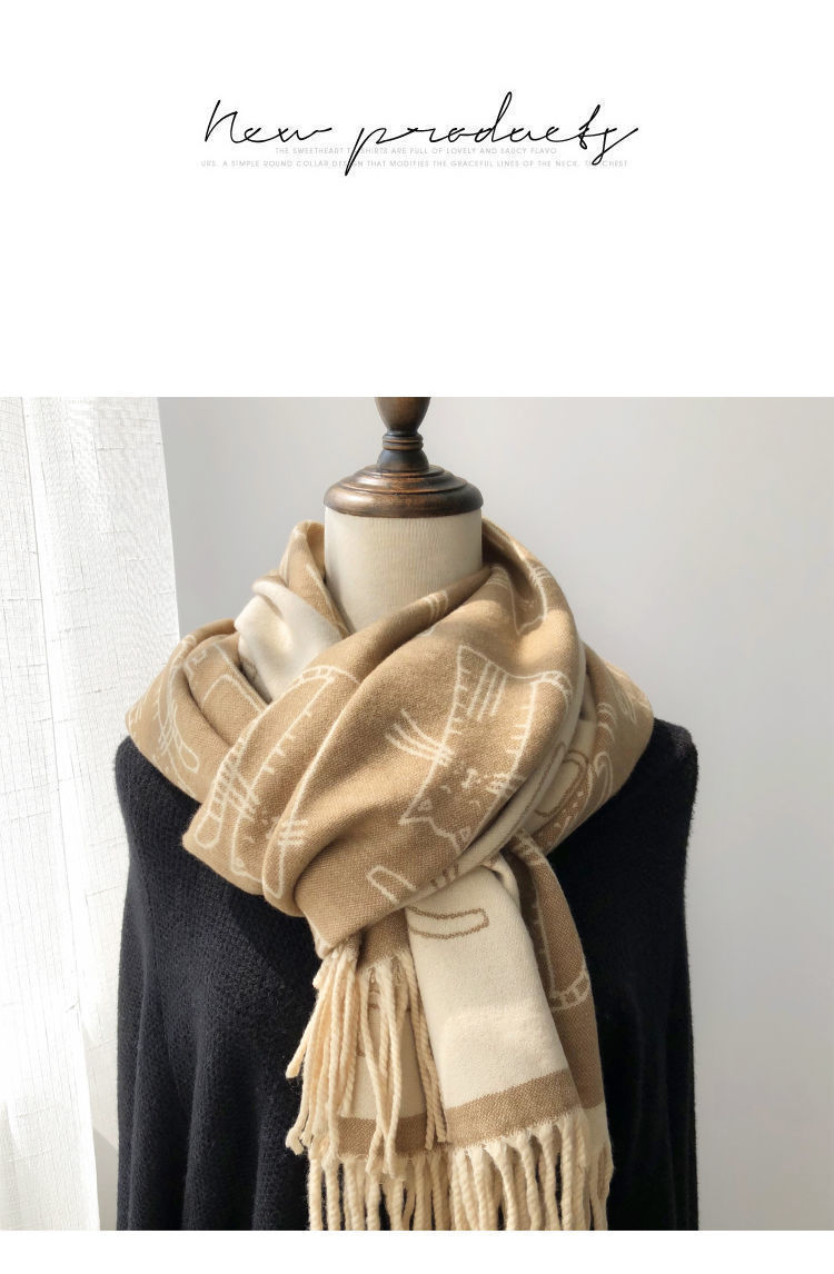 주문 고양이 술 스카프 여성용 겨울 한국식 올 매치 캐시미어 울 숄 이중 목적 양면 두꺼운 스카프스토어 가기