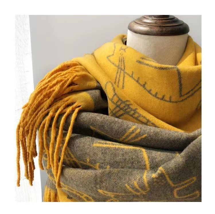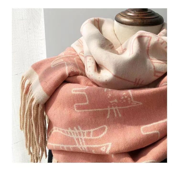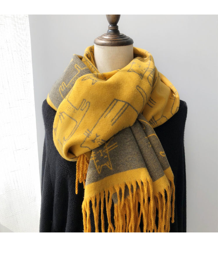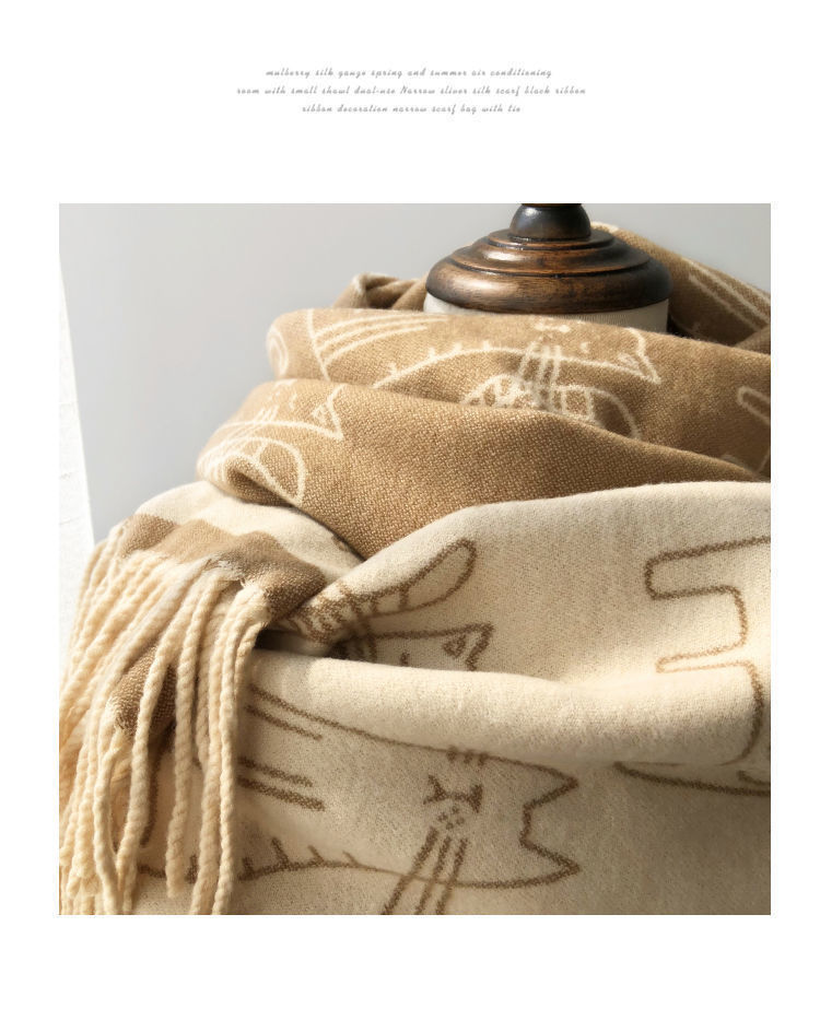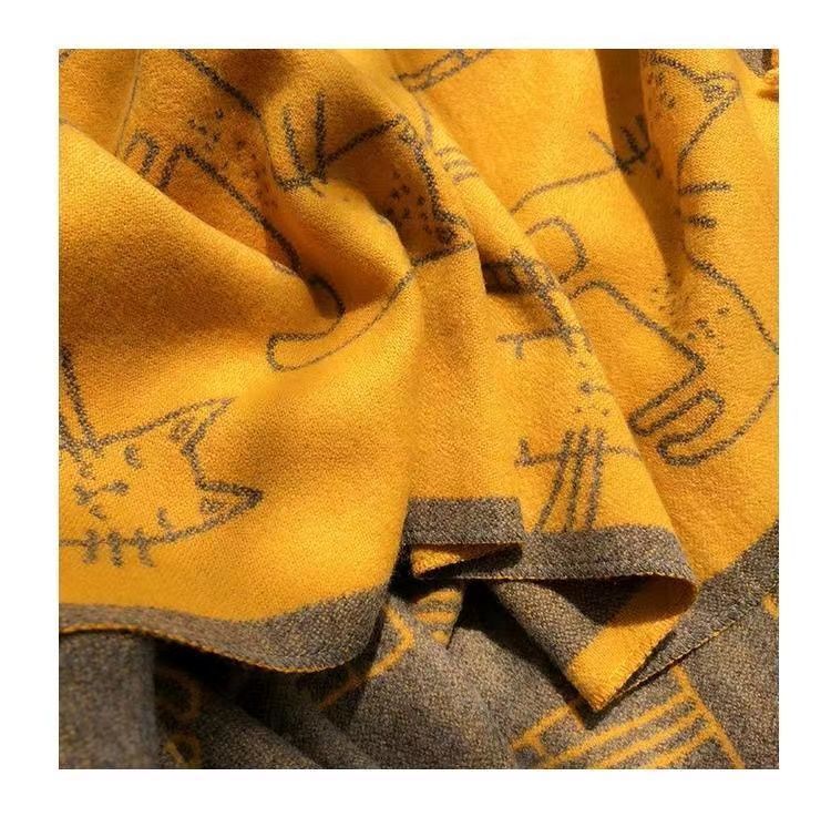 주문 고양이 술 스카프 여성용 겨울 한국식 올 매치 캐시미어 울 숄 이중 목적 양면 두꺼운 스카프