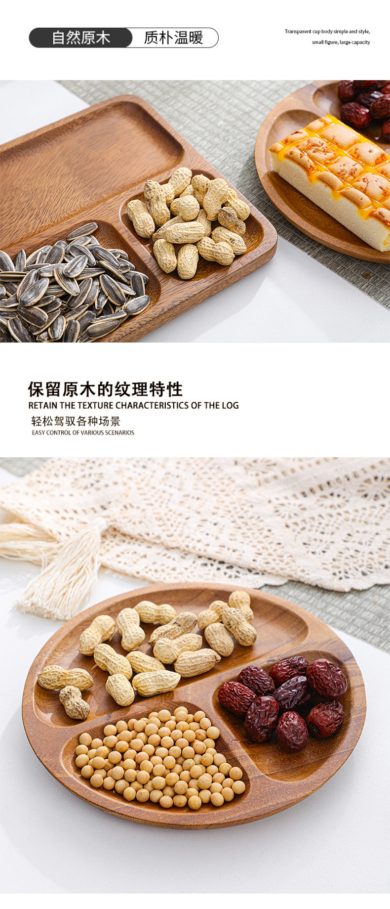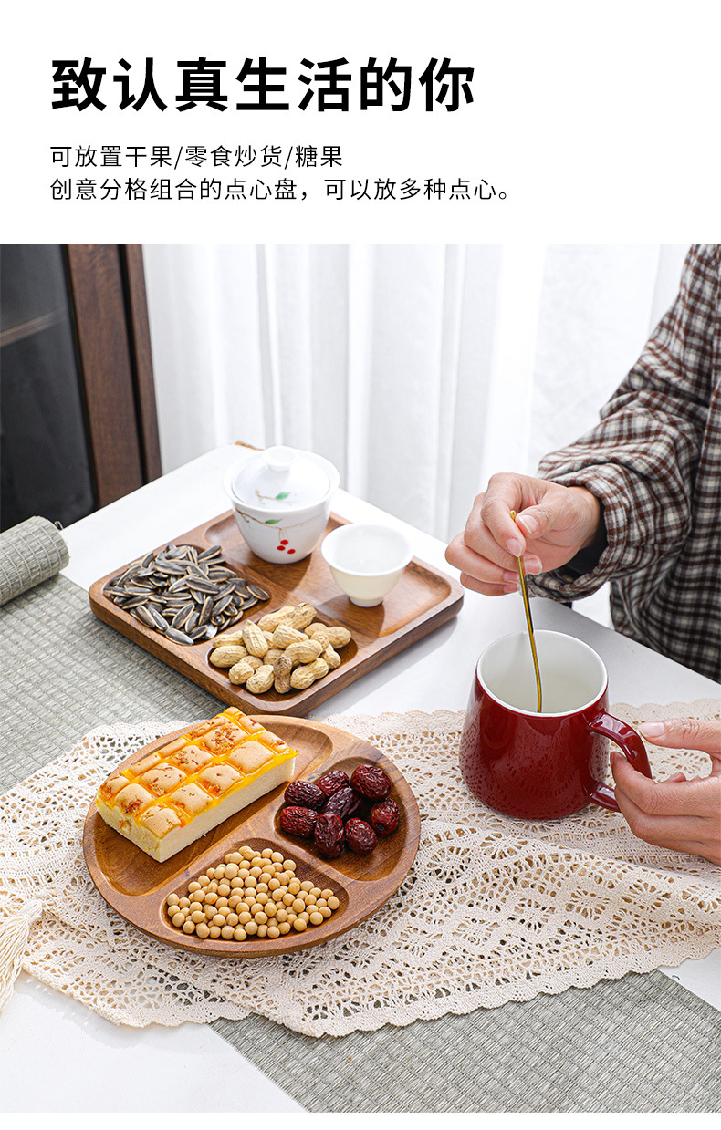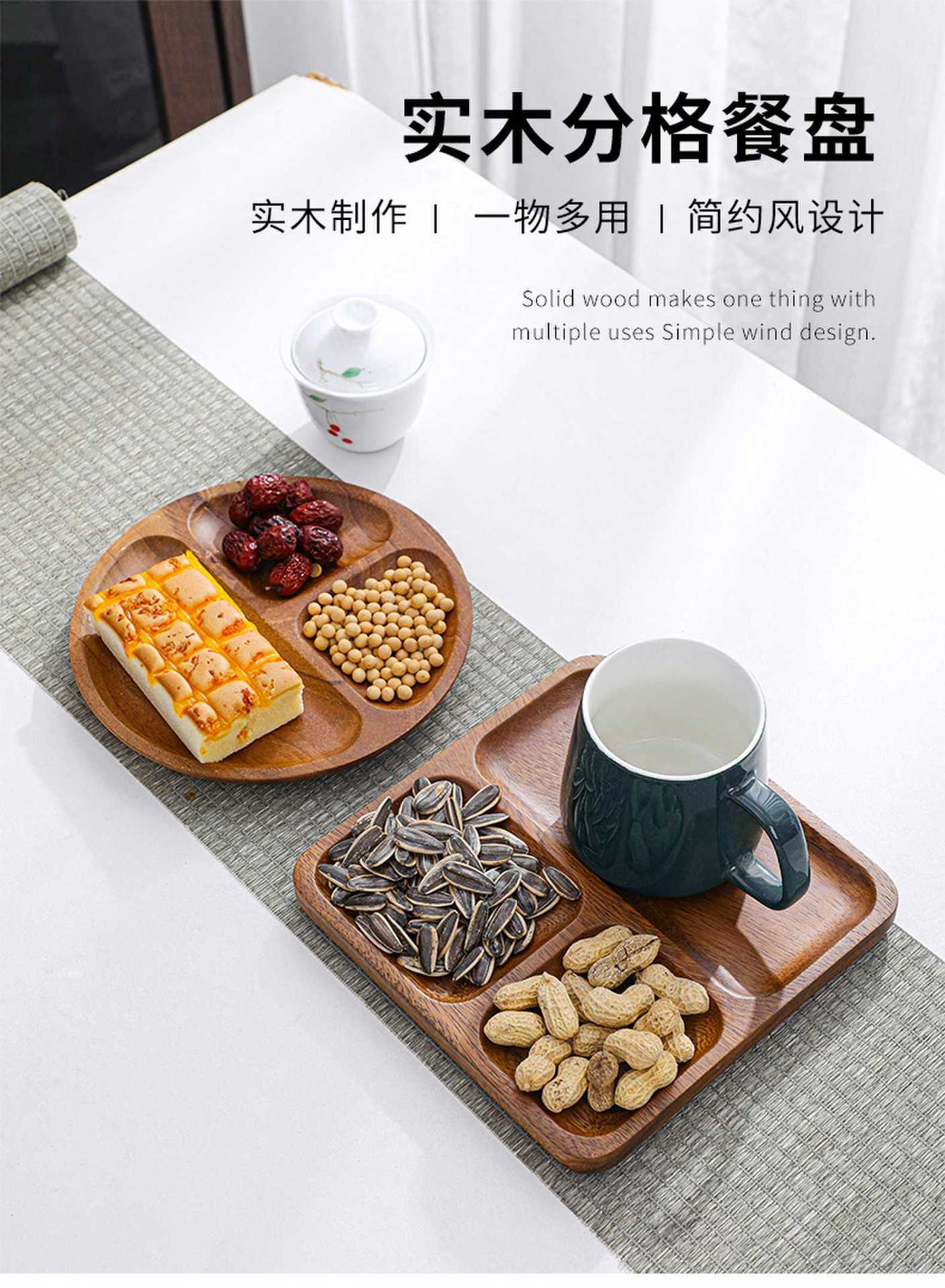 단단한 나무 쟁반 아침 식사 분할 과일 쟁반 홈 레스토랑 오후 차 케이크 쟁반 간식 말린 과일 쟁반스토어 가기