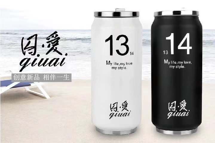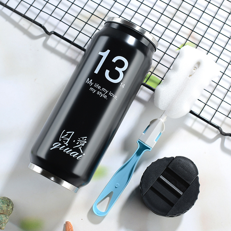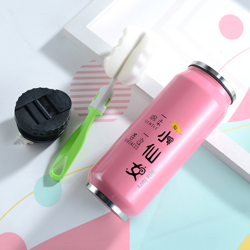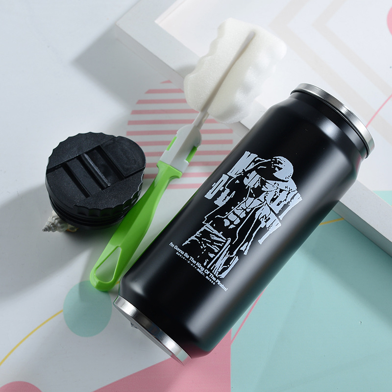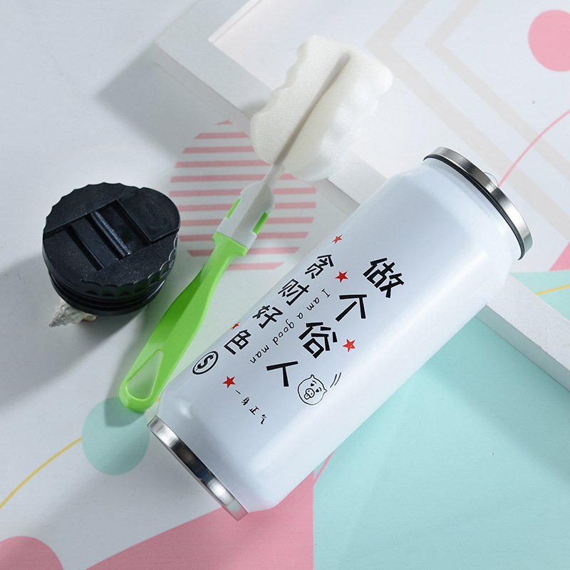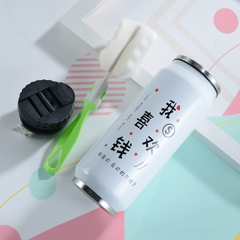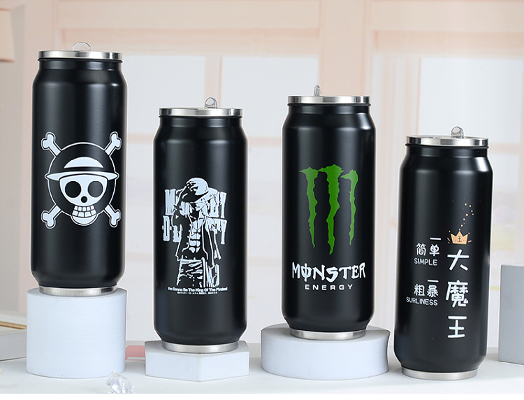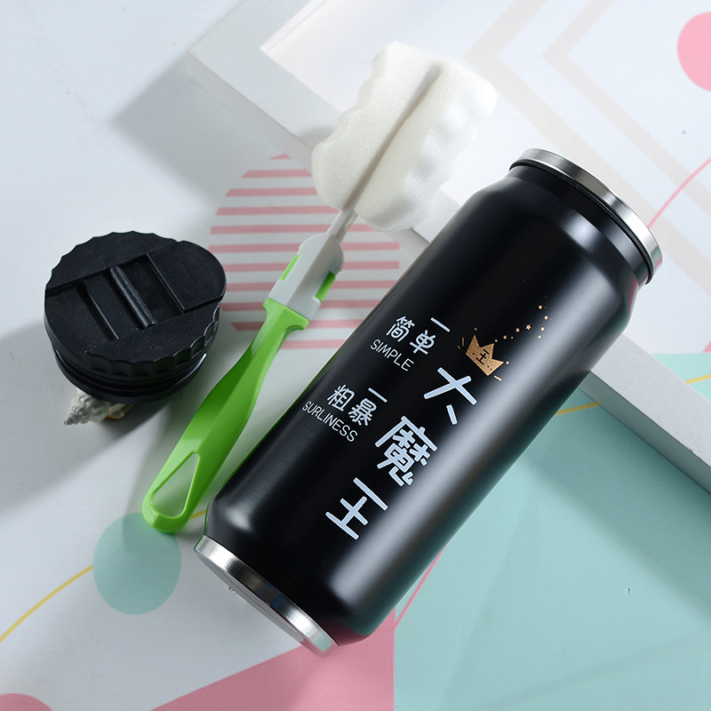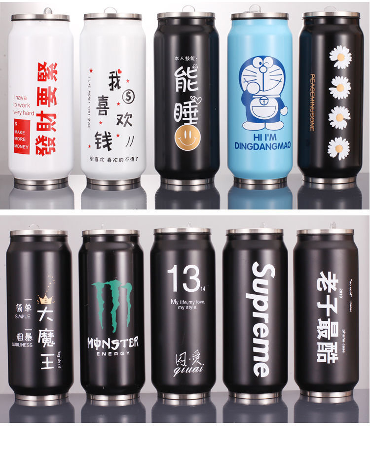 창의적인 3D 프린팅 캔 모양 빨대컵, 심플한 스테인리스 휴대용 보온병, 세련된 이중 음용 기능 선물용 물컵