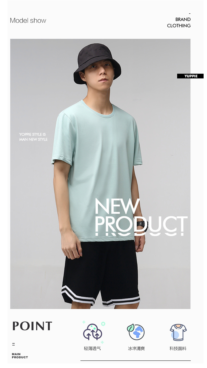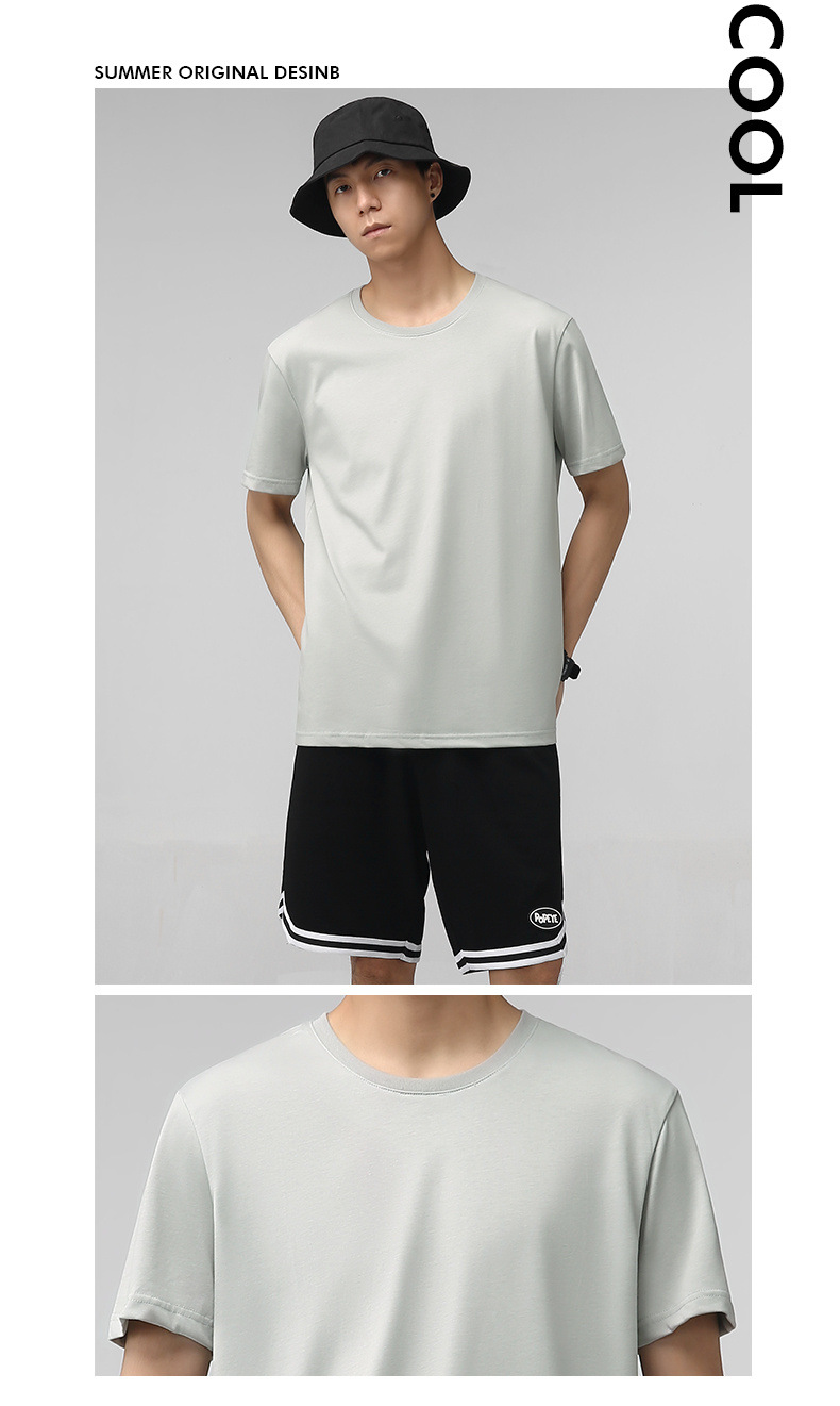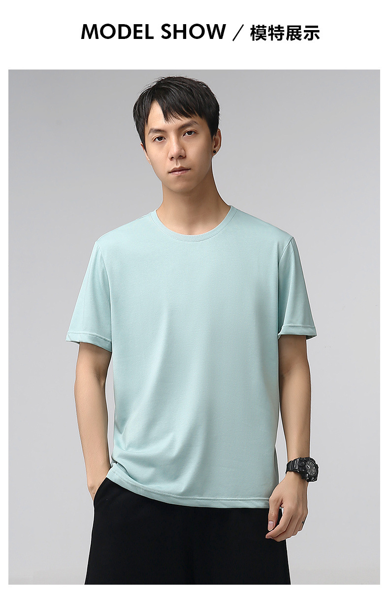 아이스 실크 면 반소매 티셔츠 남성용 여름 새로운 아이스 센스 편안한 하프 슬리브 베이스 셔츠 단색 캐주얼 라운드 넥 탑