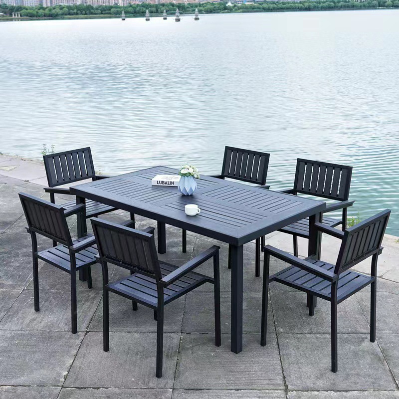 야외 테이블과 의자 안뜰 방수 자외선 차단제 레저 식탁과 의자 조합 정원 야외 카페 플라스틱 나무 테이블과 의자