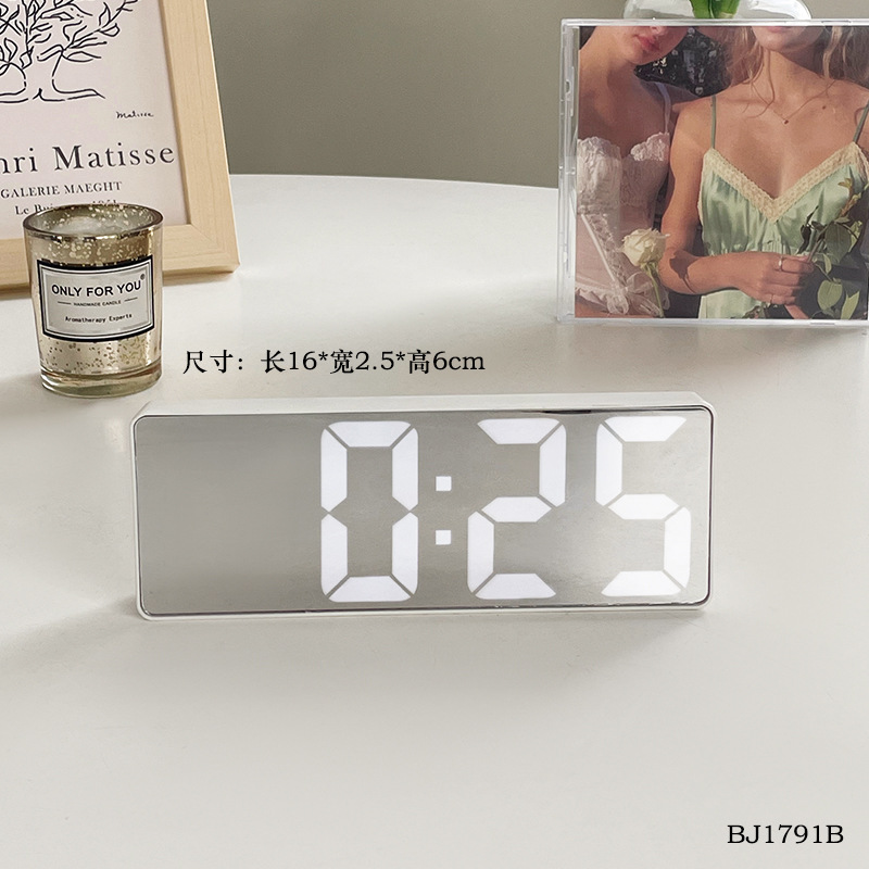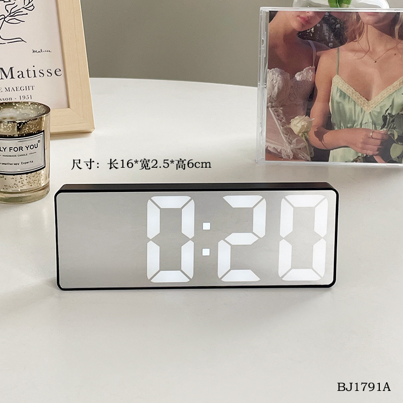 현대 간단한 흑백 거울 LED 음성 제어 알람 시계 기숙사 침대 옆 탁상용 디지털 시계 온도 달력 전자 시계