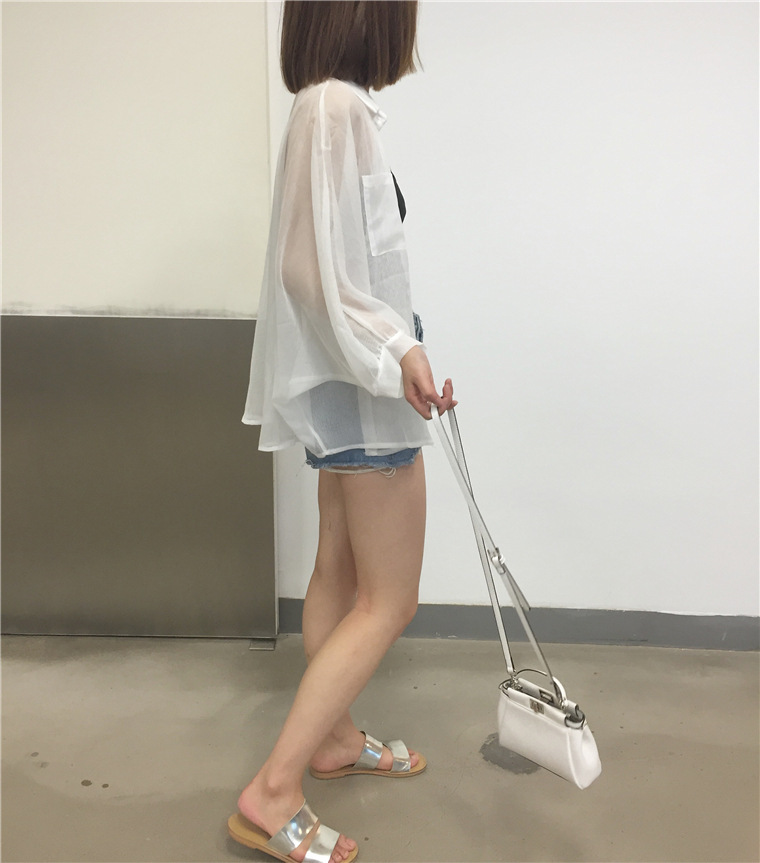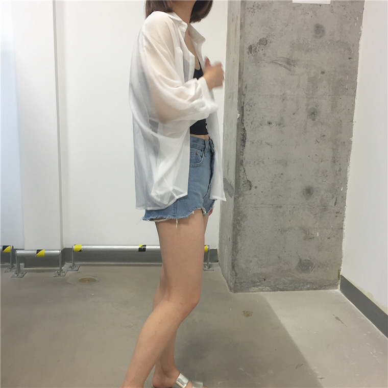 여자의 여름 한국 자외선 차단제 의류 여자의 코트 한국 카디건 얇은 쉬폰 셔츠 느슨한 에어컨 셔츠 유행스토어 가기