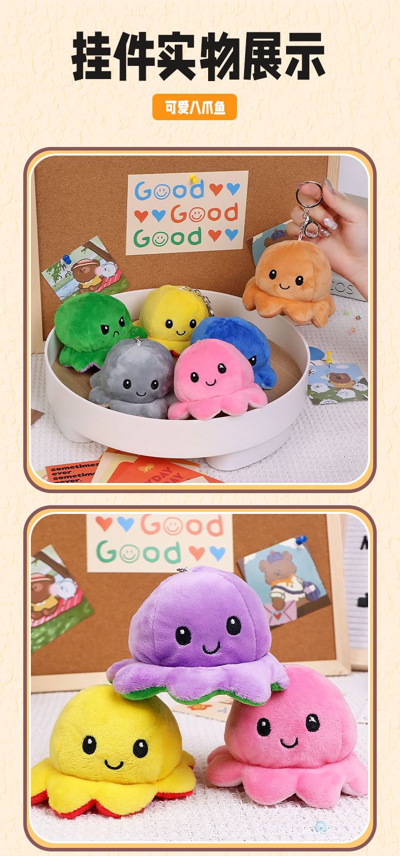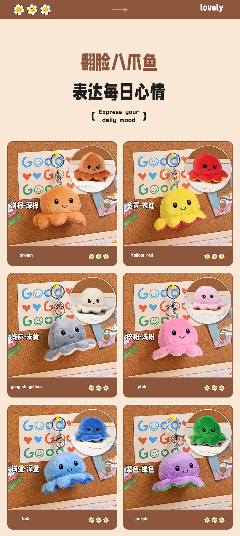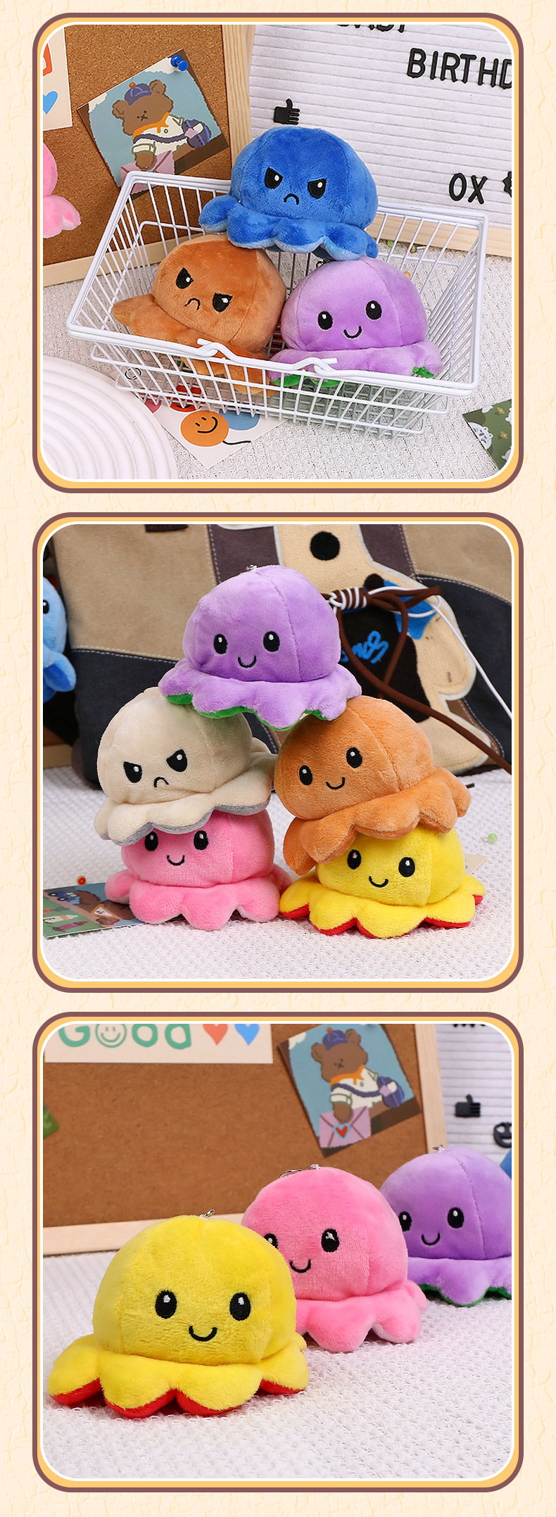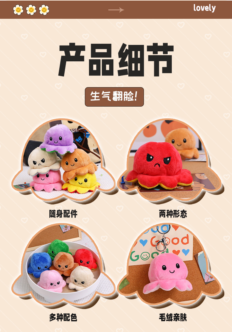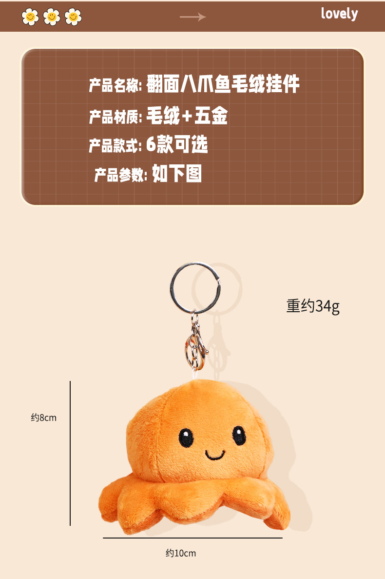 크리 에이 티브 귀여운 플립 얼굴 문어 열쇠 고리 봉제 펜던트 인형 봉제 장난감 가방 펜던트스토어 가기