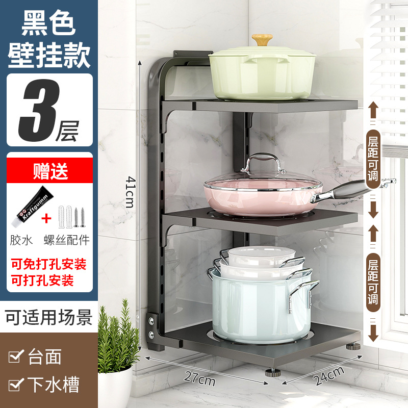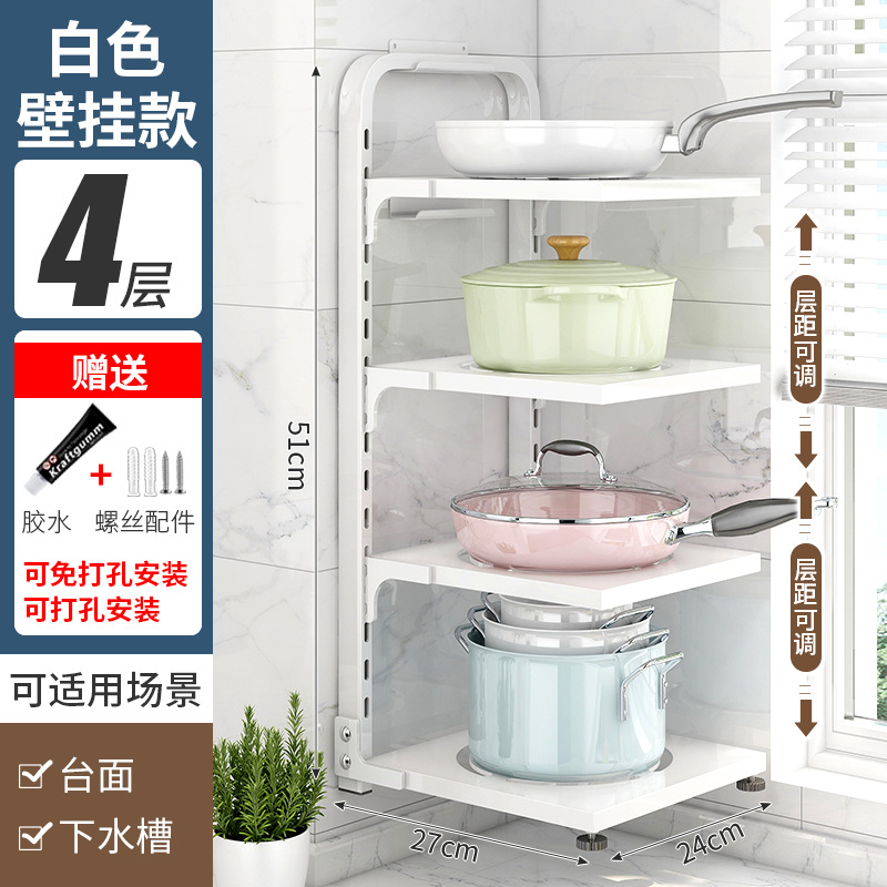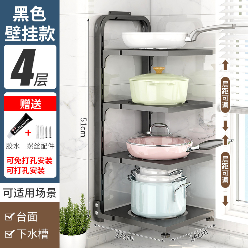 주방 냄비 랙 다층 스토리지 랙 좁은 틈새 랙 조리대 벽 코너 냄비 하부 싱크 캐비닛 레이어드 스토리지스토어 가기