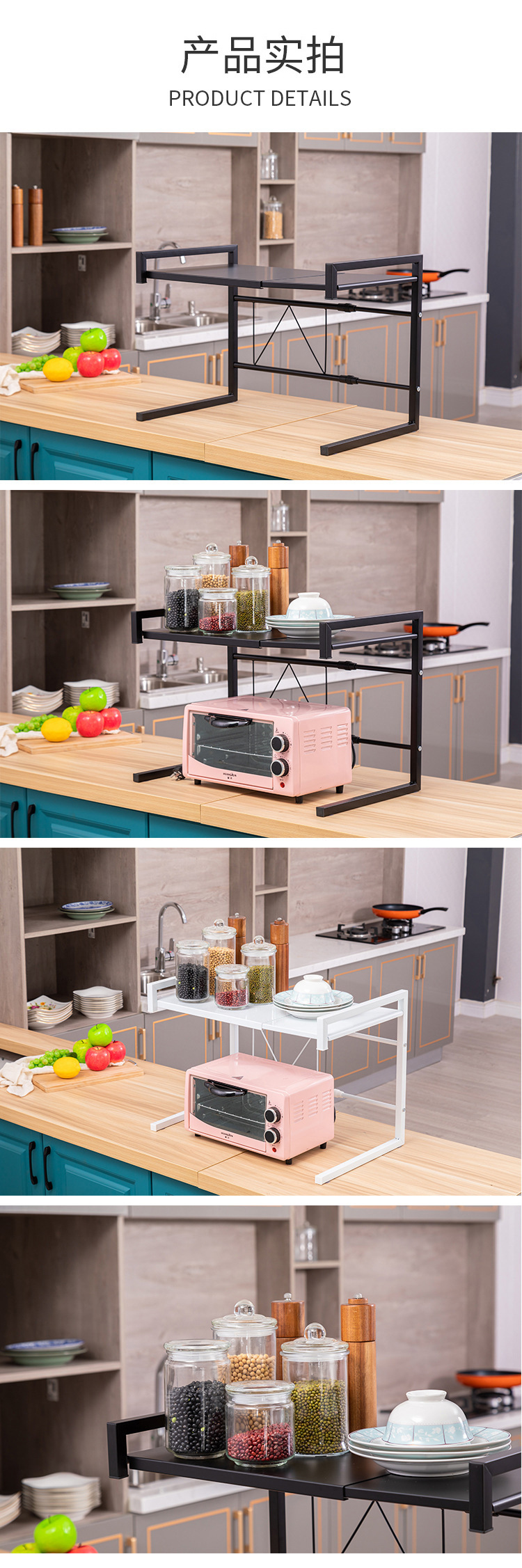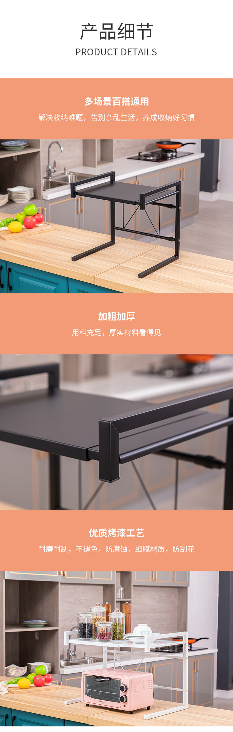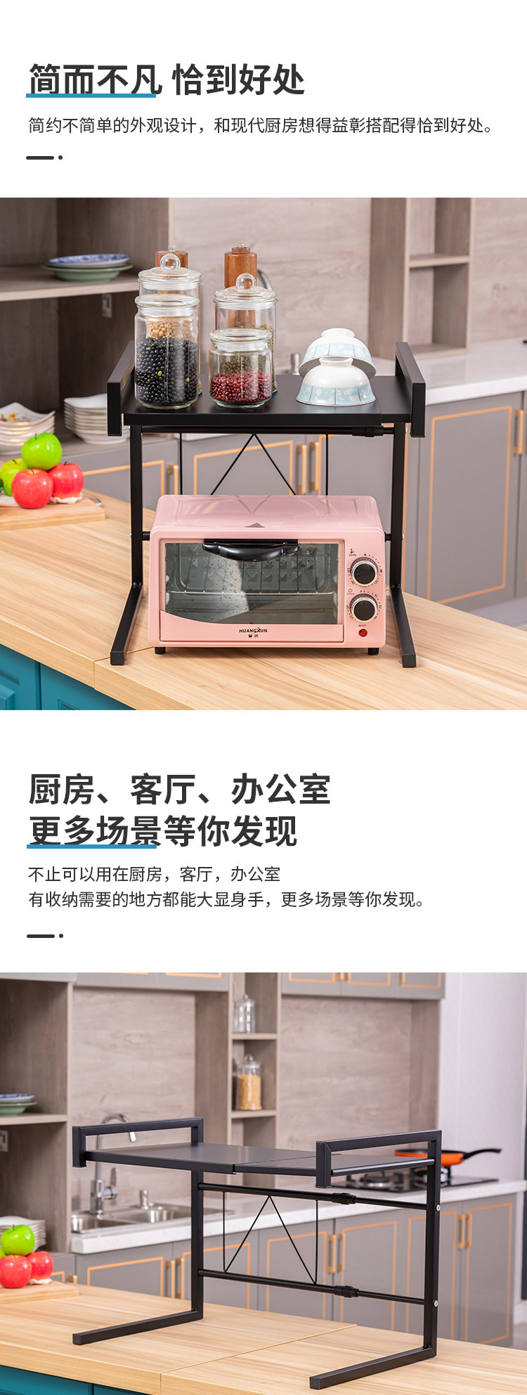 주방용 확장형 전자레인지 선반, 탁상용 밥솥 보관 선반, 전자레인지 거치대, 철제 선반