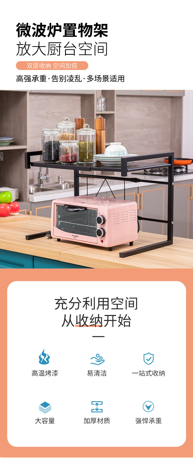 주방용 확장형 전자레인지 선반, 탁상용 밥솥 보관 선반, 전자레인지 거치대, 철제 선반스토어 가기