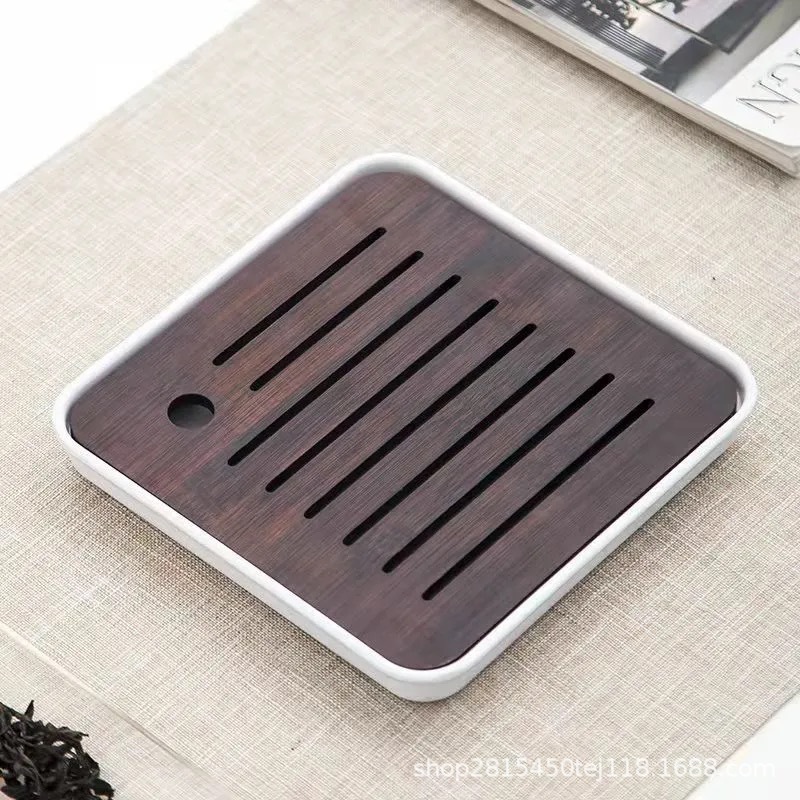 일본 스타일 간단한 대나무 마른 거품 작은 차 트레이 미타민 모조 호두 컬러 차 트레이 보관 및 배수 작은 차 테이블 트레이