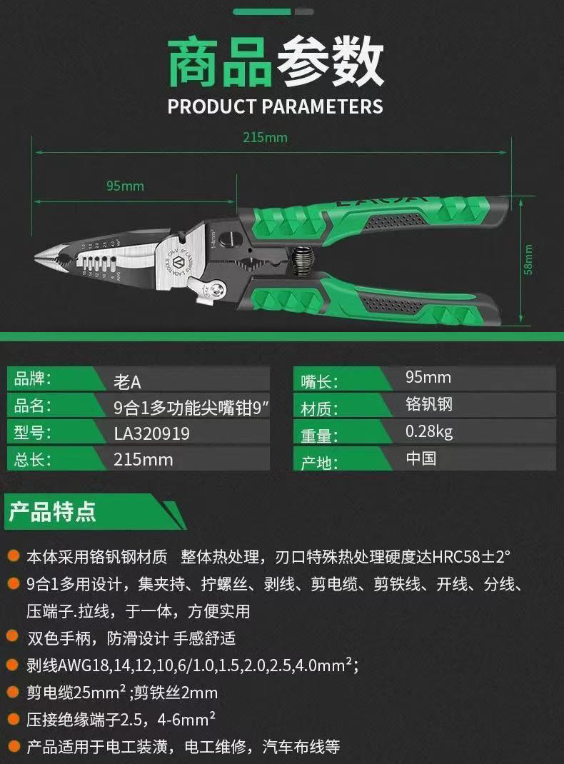 오래된 전기 특수 바늘 코 펜치 9 인치 다기능 와이어 스트리핑 크림 핑 바늘 코 펜치 크로스 보더 압착 펜치스토어 가기