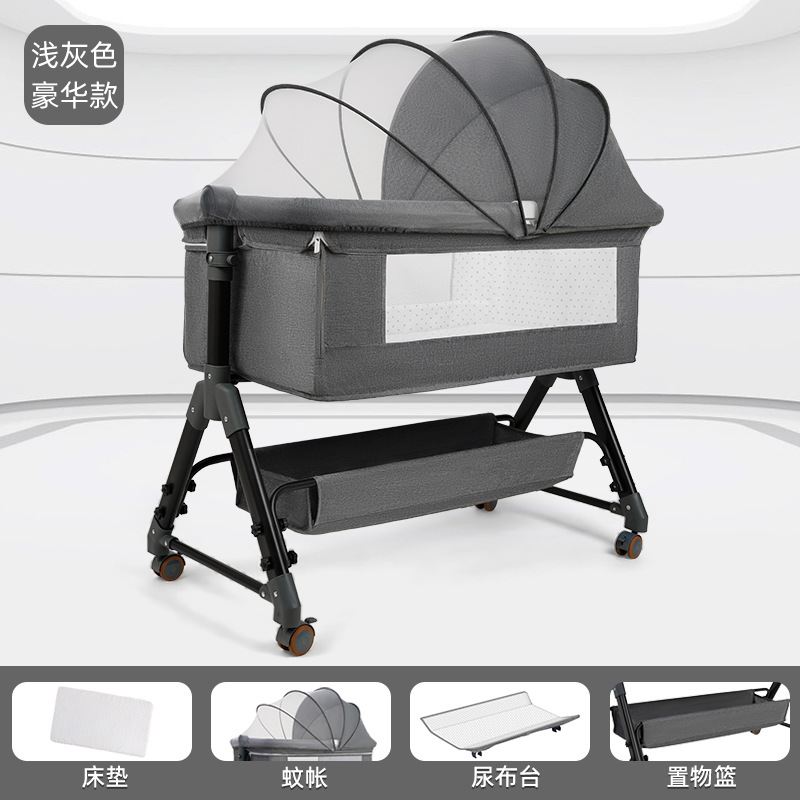 • A108 라이트 그레이-(쉐이크 업) 럭셔리 + 모기장 + 매트리스 + 기저귀 + 수납 바구니