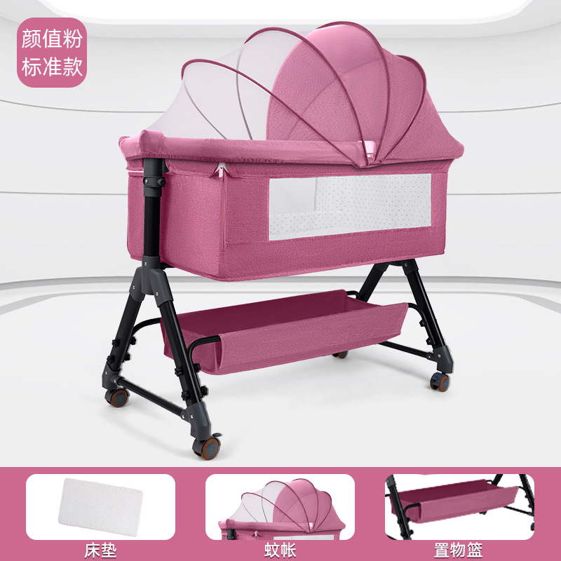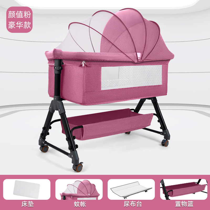 • A599-핑크-럭셔리모델(낮은 로커) 스탠다드 모델 + 모기장 + 매트리스 + 수납바구니 + 기저귀교환대