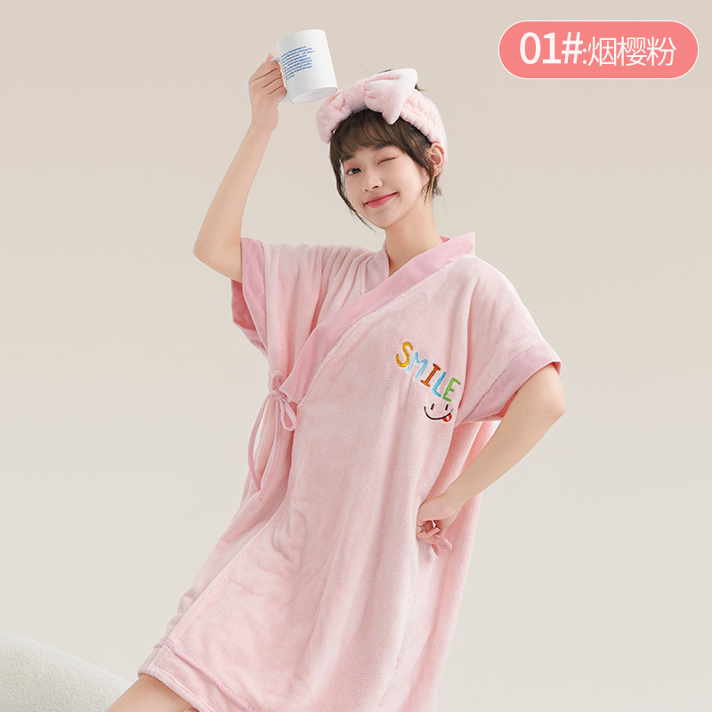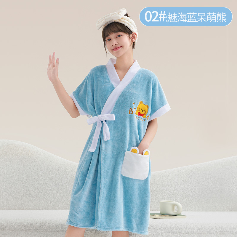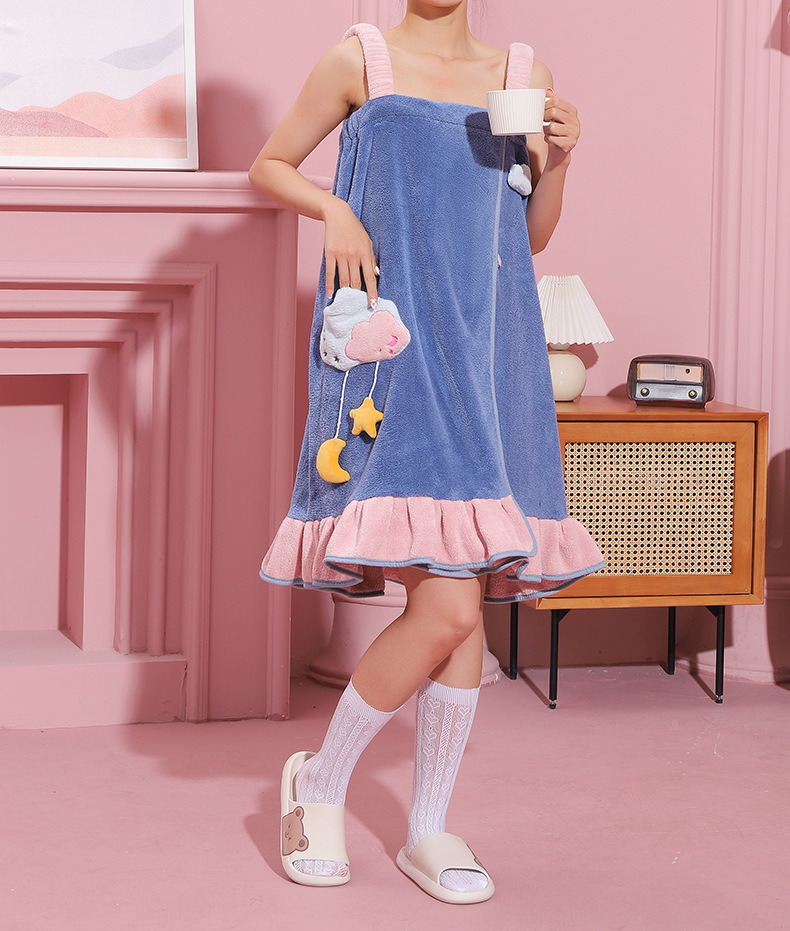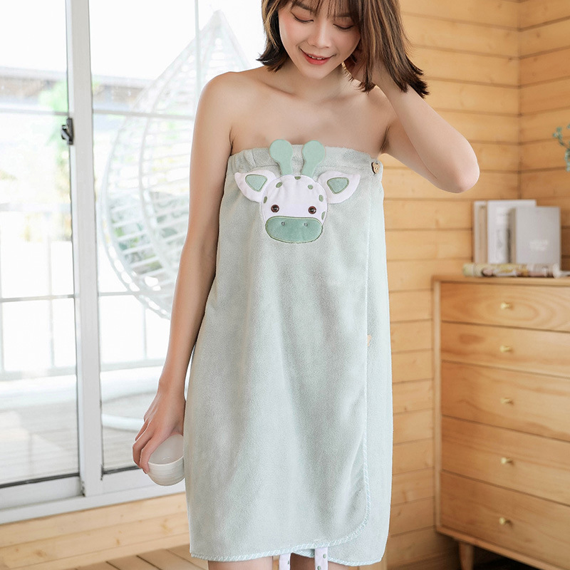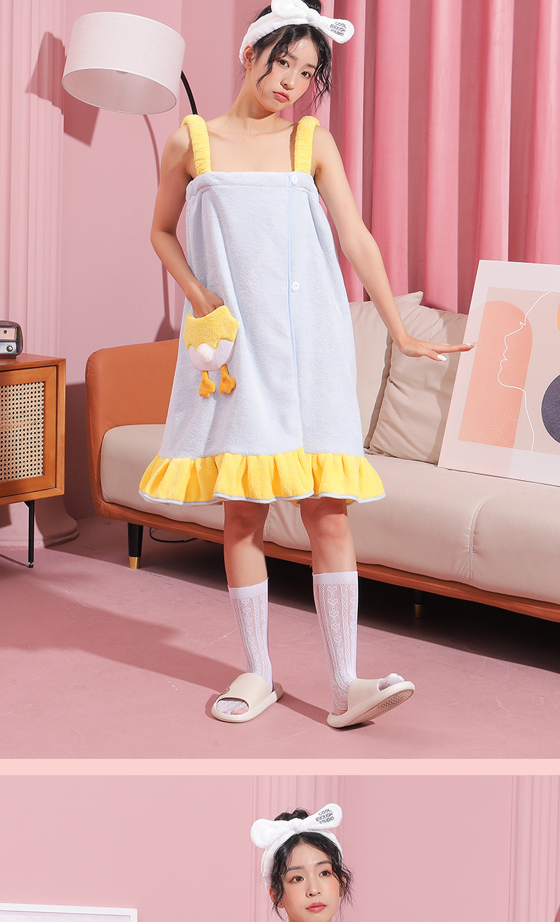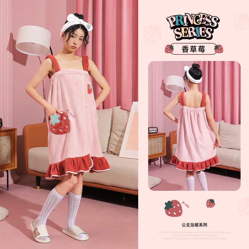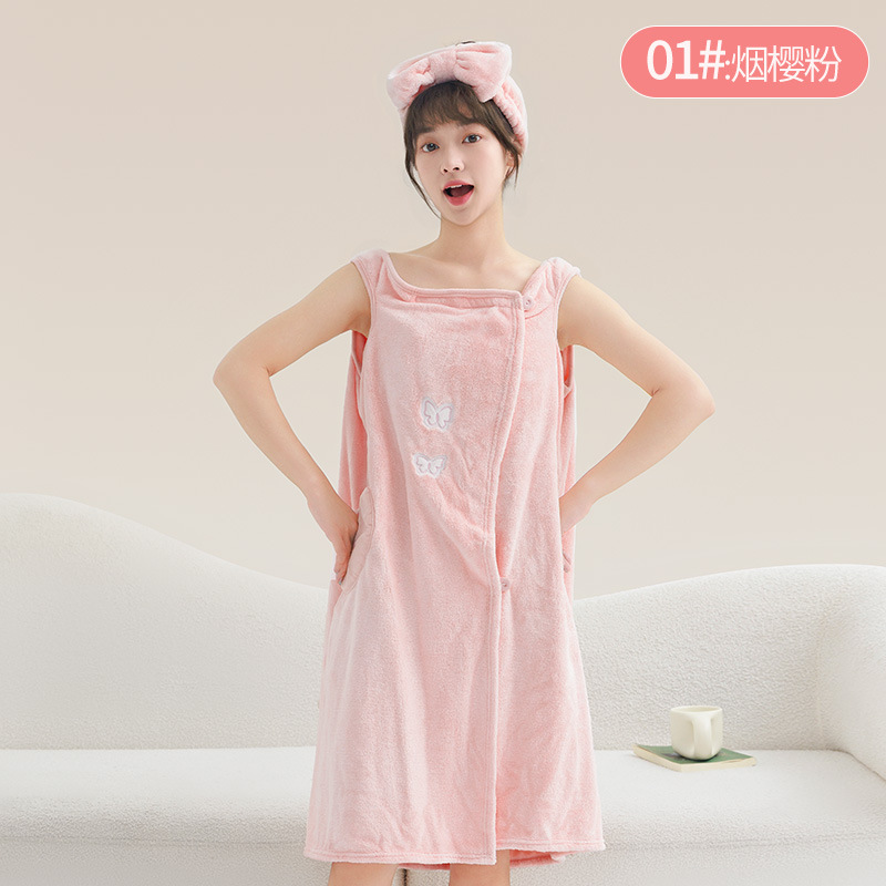 목욕 타올 흡수성 속건 귀여운 산호 양털 가정용 성인 가을과 겨울 슬링 튜브 길이 착용 목욕 가운 여성용 포장 목욕 스커트스토어 가기