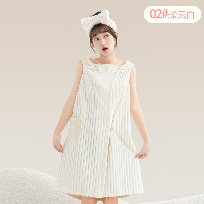 목욕 타올 흡수성 속건 귀여운 산호 양털 가정용 성인 가을과 겨울 슬링 튜브 길이 착용 목욕 가운 여성용 포장 목욕 스커트