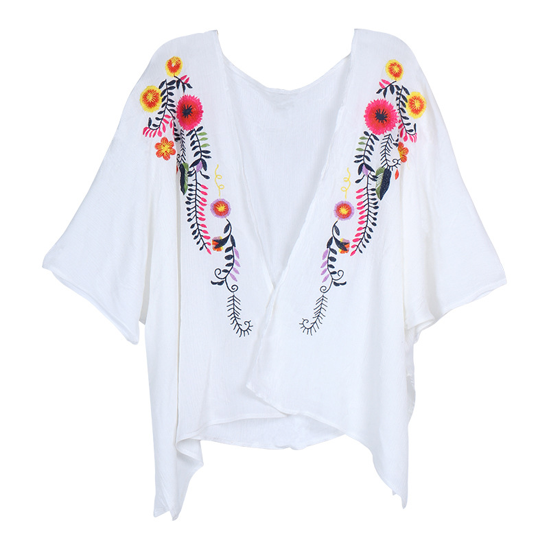크로스 보더 유럽 및 미국 자외선 차단제 의류 라면 주름 에스닉 스타일 컬러 자수 분할 카디건 여성용 비치 의류 숄