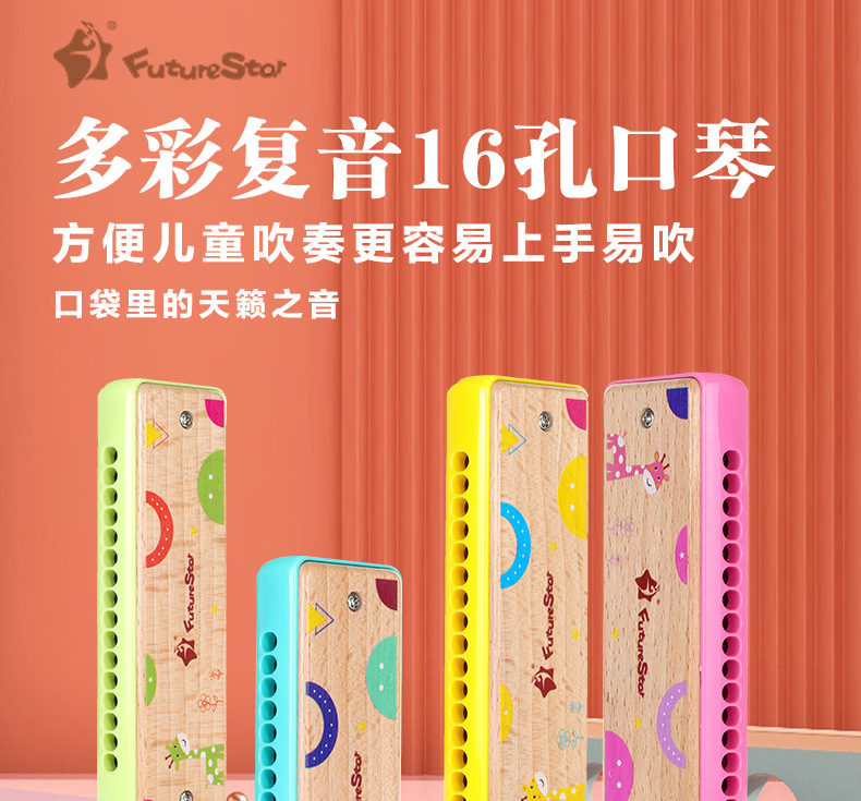 공장 도매 미래 별 16 홀 목제 대성 하모니카 어린이 교육용 하모니카 악기 초보자 하모니카스토어 가기