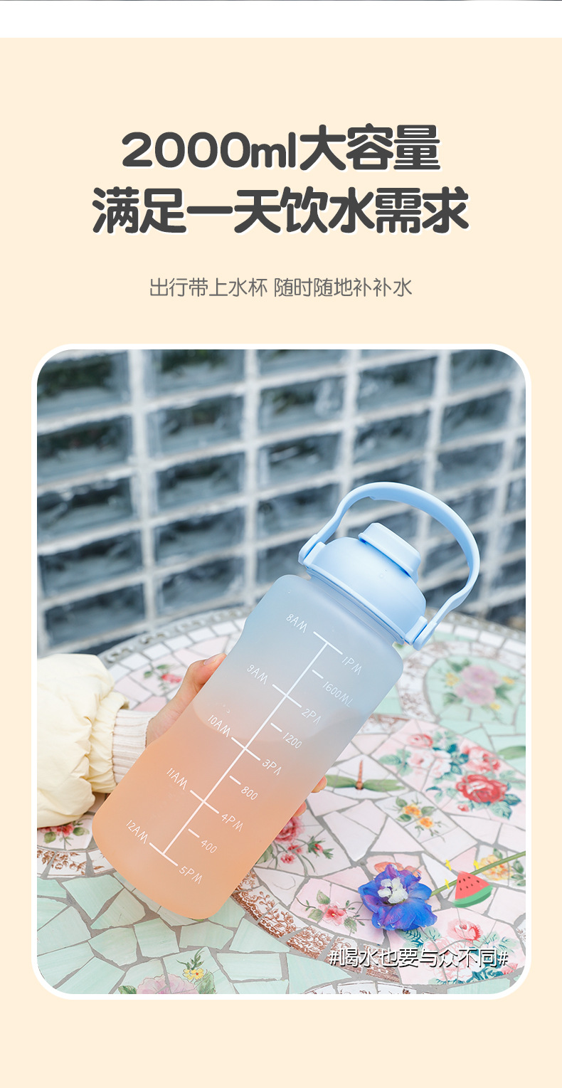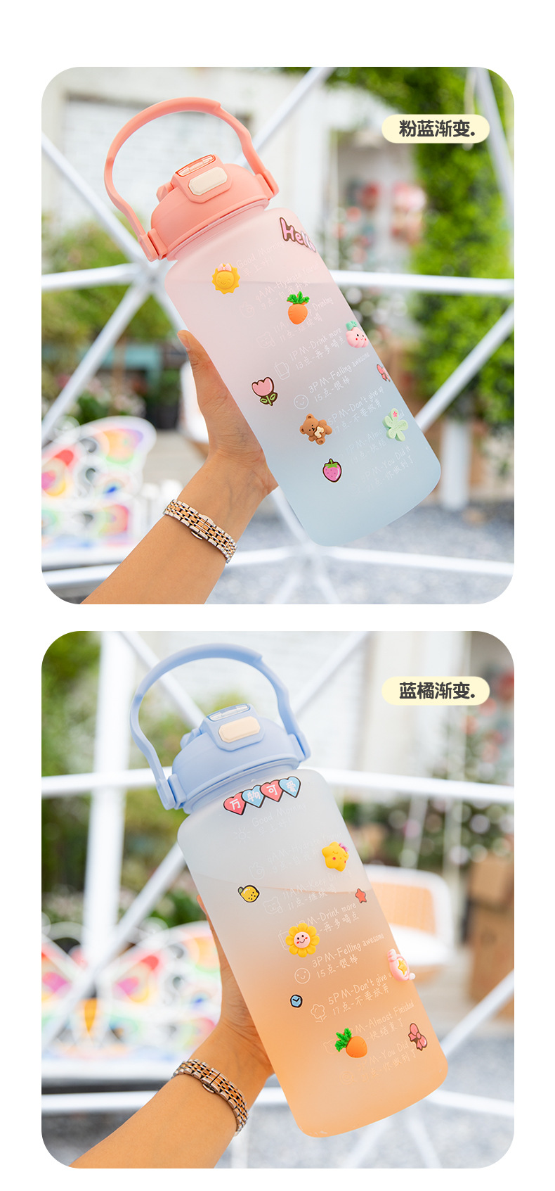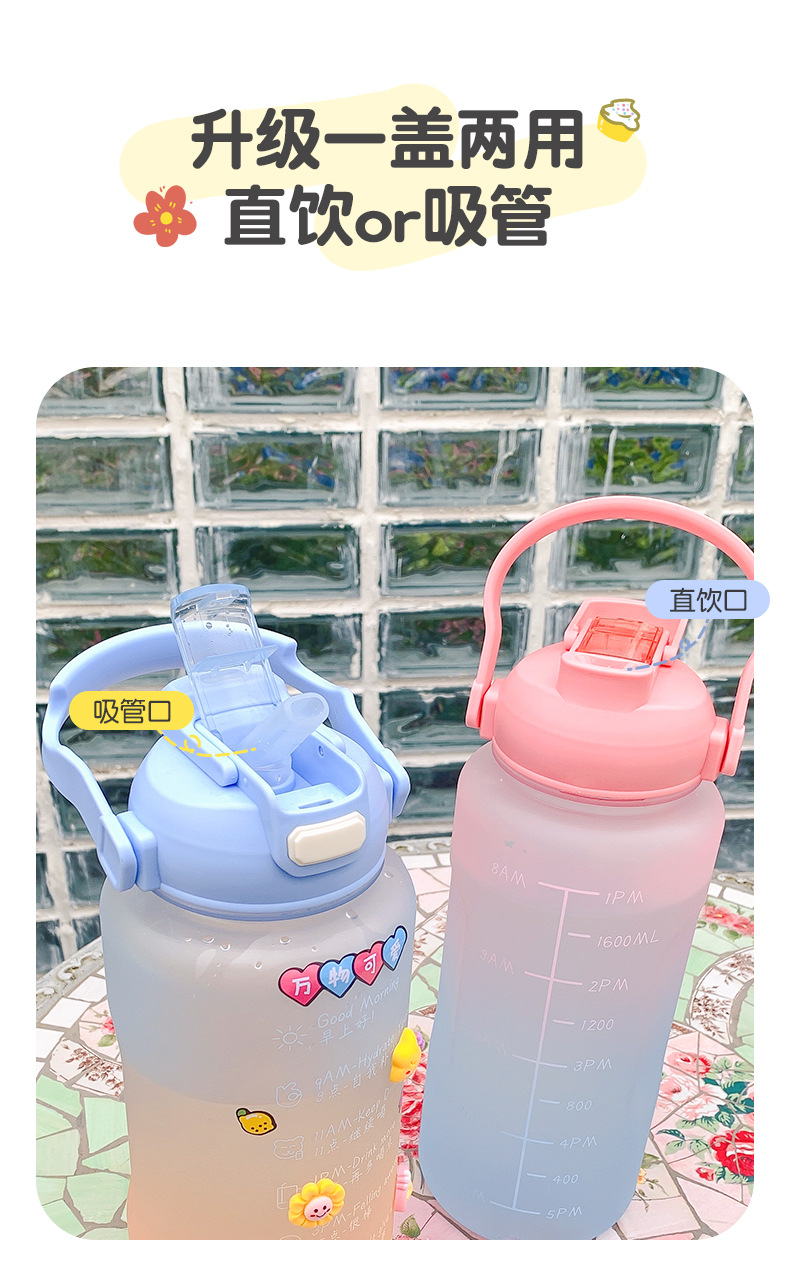 인터넷 연예인 학생 야외 창조적 인 스포츠 주전자 여름 밖으로 대용량 플라스틱 물 컵 휴대용 젖빛 이중 마시는 컵스토어 가기