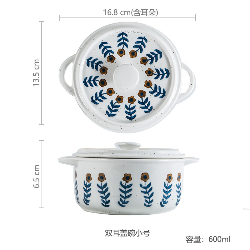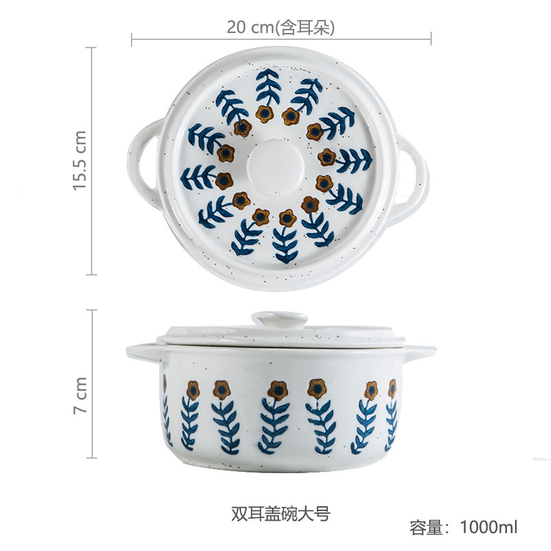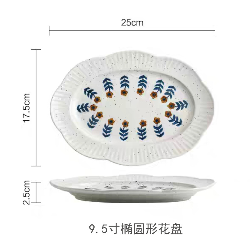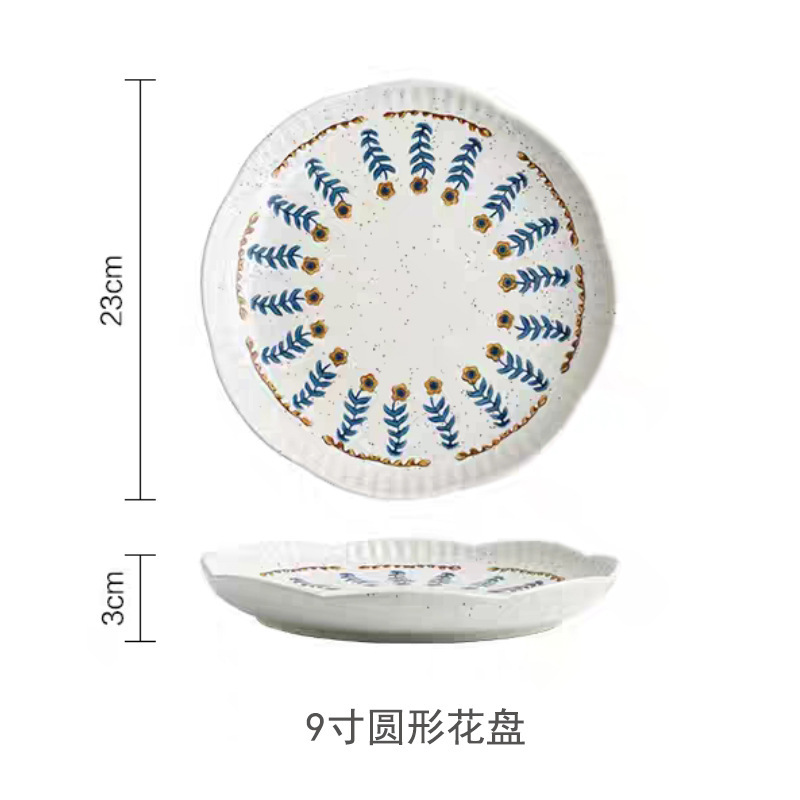 일본식 복고풍 스타일 창조적 인 석기 식기 가정용 밥 그릇 접시 언더 글레이즈 색상 손으로 그린 접시 샐러드 그릇