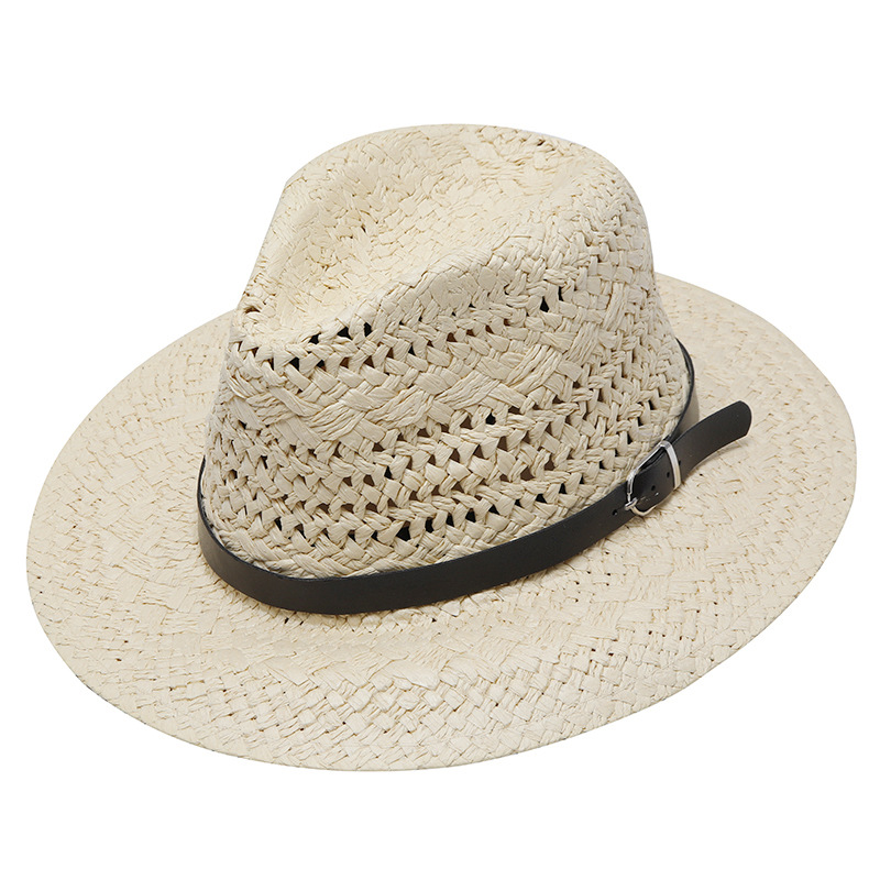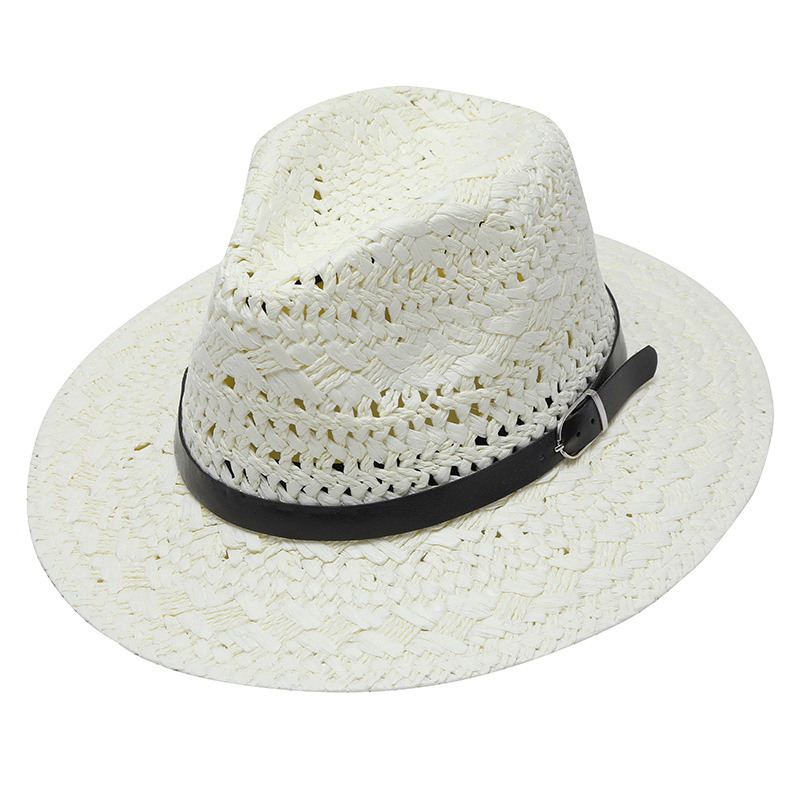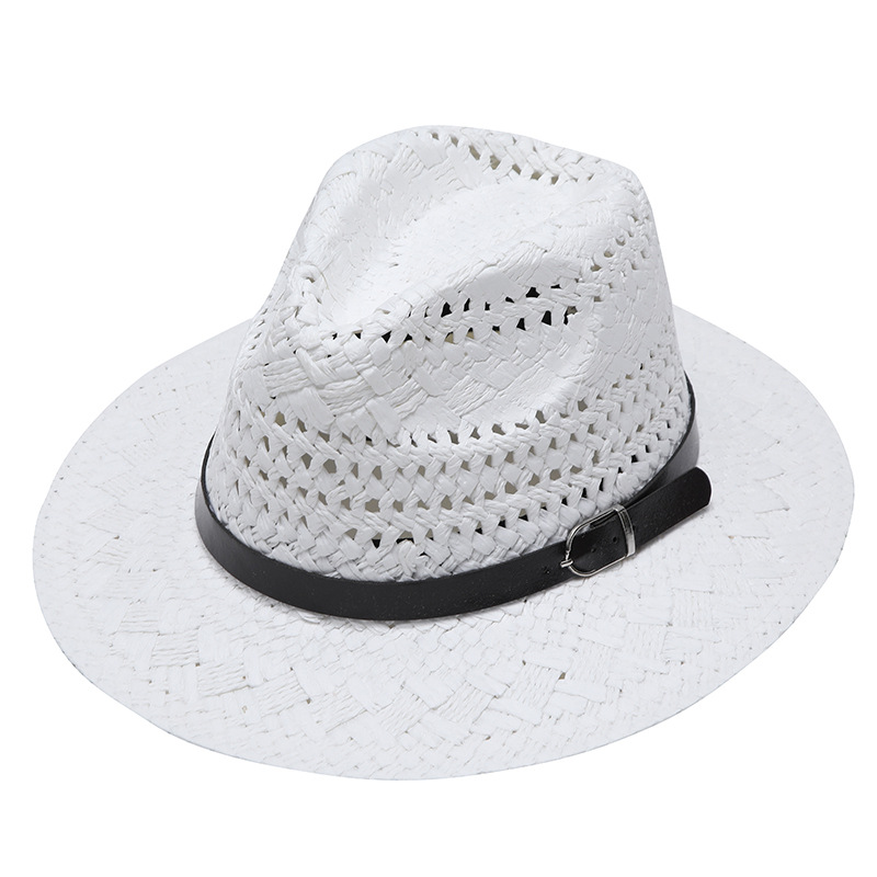 남성과 여성을위한 한국식 수제 중공 재즈 밀짚 모자 파나마 화이트 탑 햇 야외 빅 림 태양 모자 트렌디스토어 가기