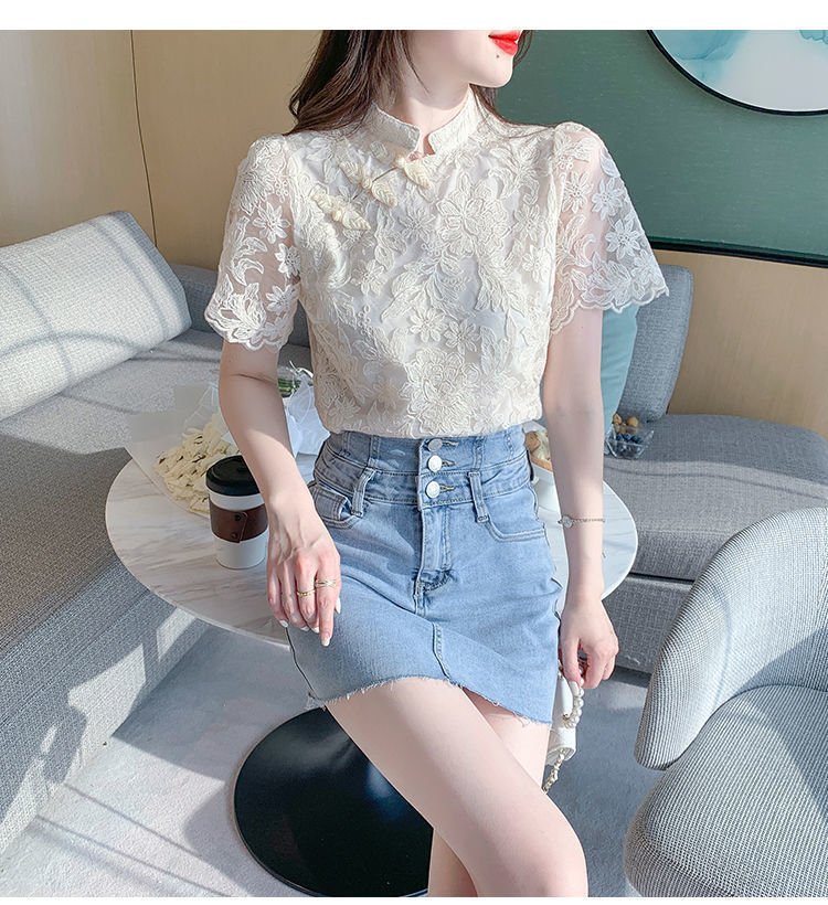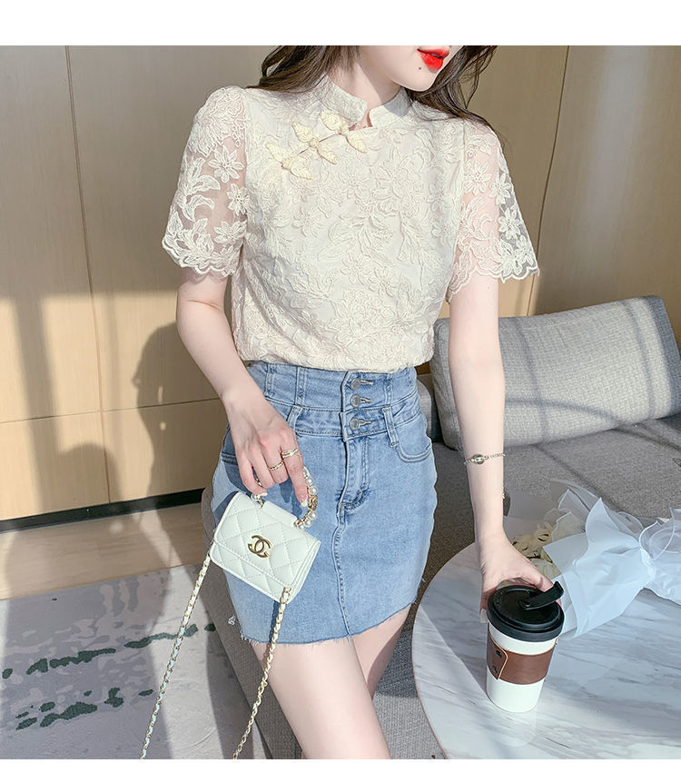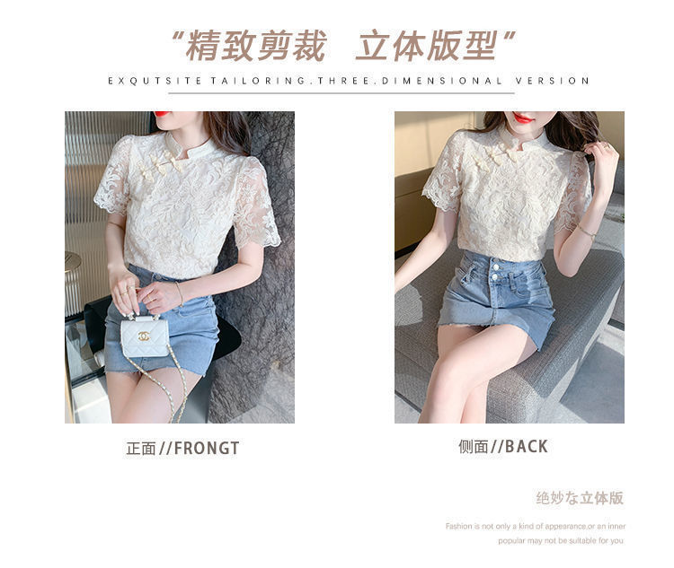 여름 외국 스타일 반팔 쉬폰 셔츠 여성 여름 2022 새로운 레이스 치파오 탑베이스 셔츠스토어 가기
