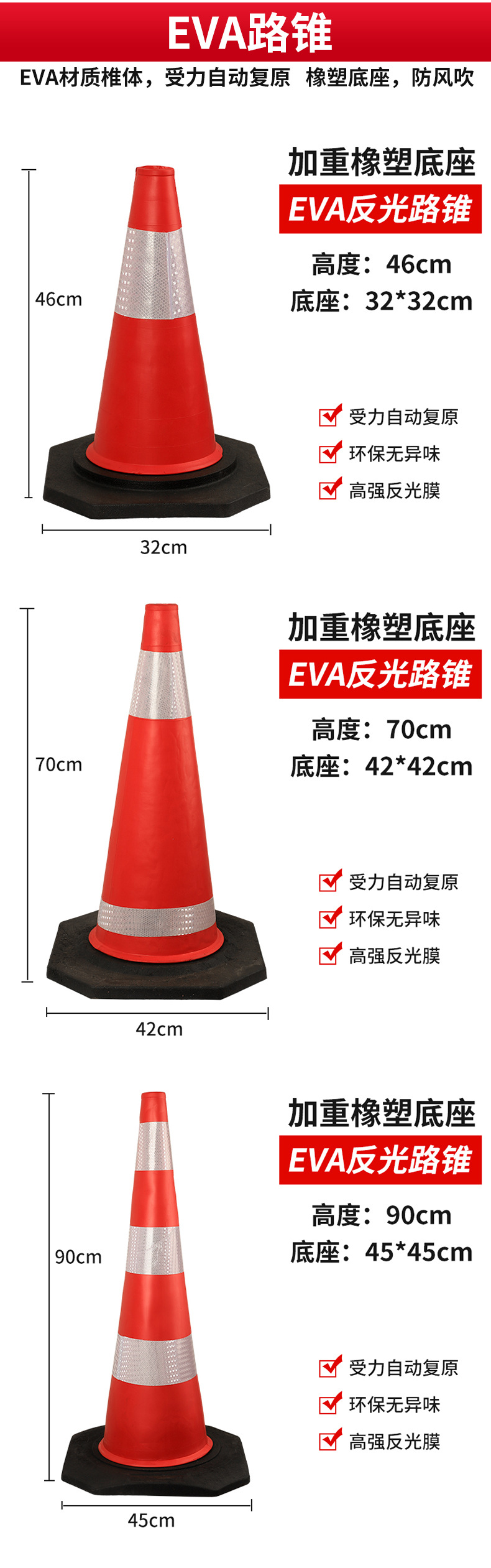 70 고무 반사 도로 콘 경고란 EVA 도로 콘 반사 콘 사각 콘 아이스크림 양동이 도로 플라스틱 경고란