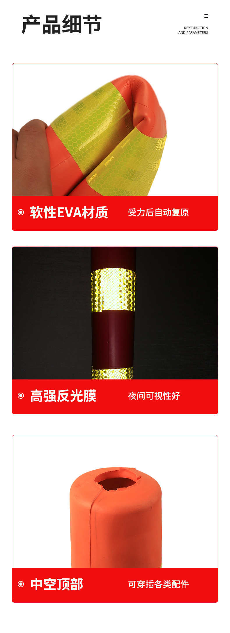 • 70EVA 스퀘어 콘 레드 바디-빨강과 흰색은 주차하지 않는다
