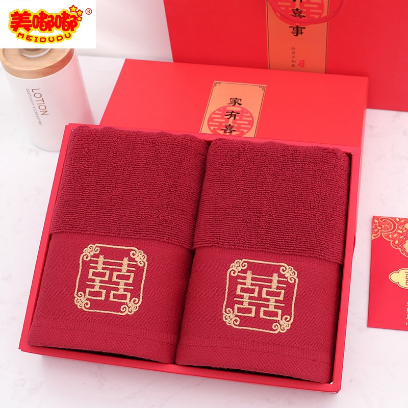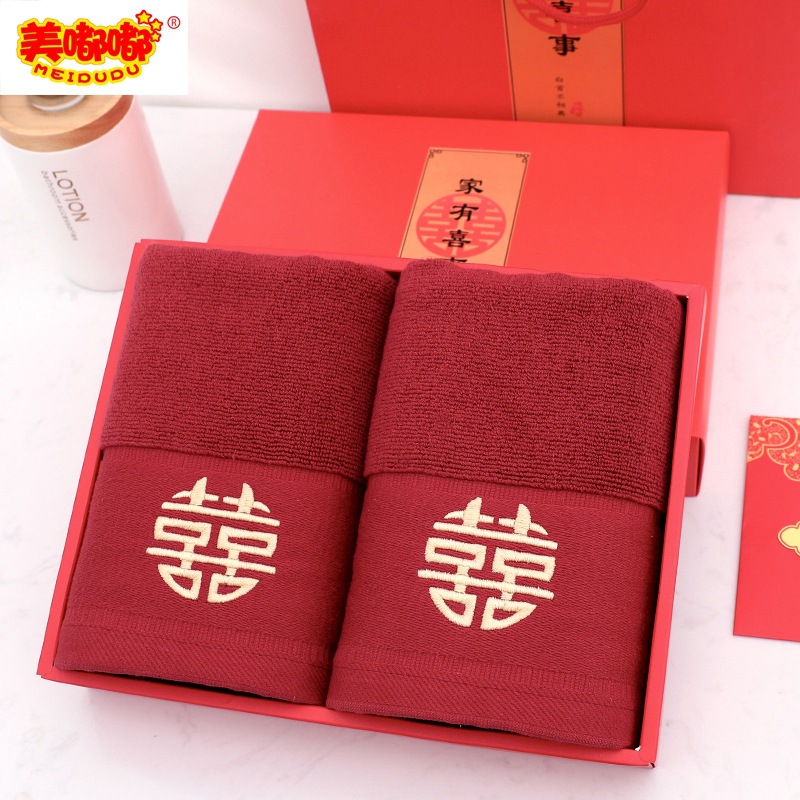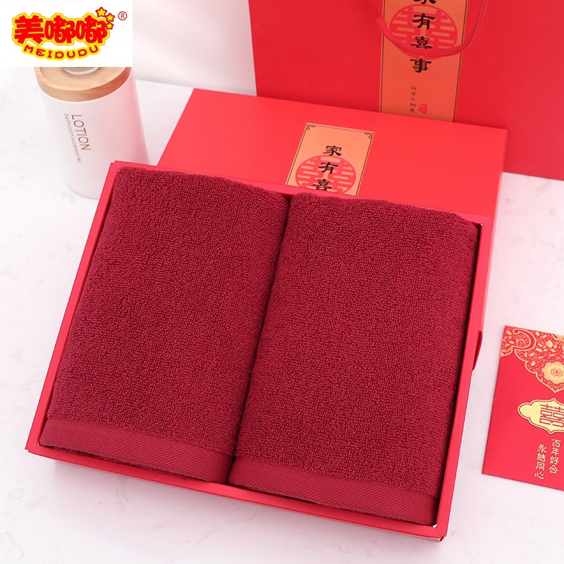 코튼 웨딩 타올 큰 버건디 32 주 미키 축복 행복한 단어 퇴색하기 쉽지 않은 결혼식 면화 결혼식 빨간 수건