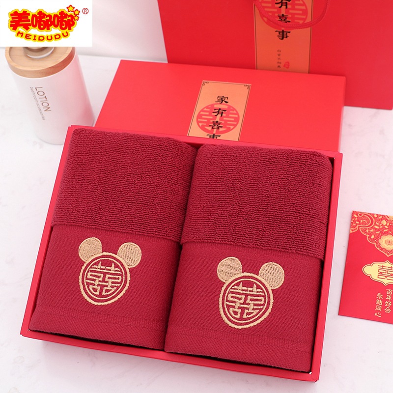 코튼 웨딩 타올 큰 버건디 32 주 미키 축복 행복한 단어 퇴색하기 쉽지 않은 결혼식 면화 결혼식 빨간 수건스토어 가기