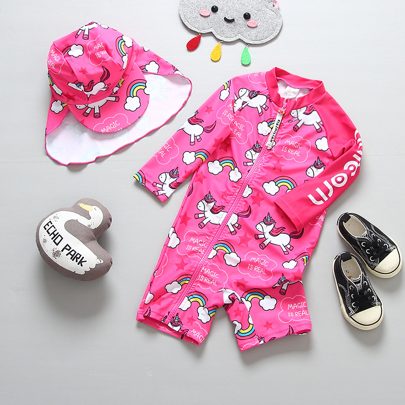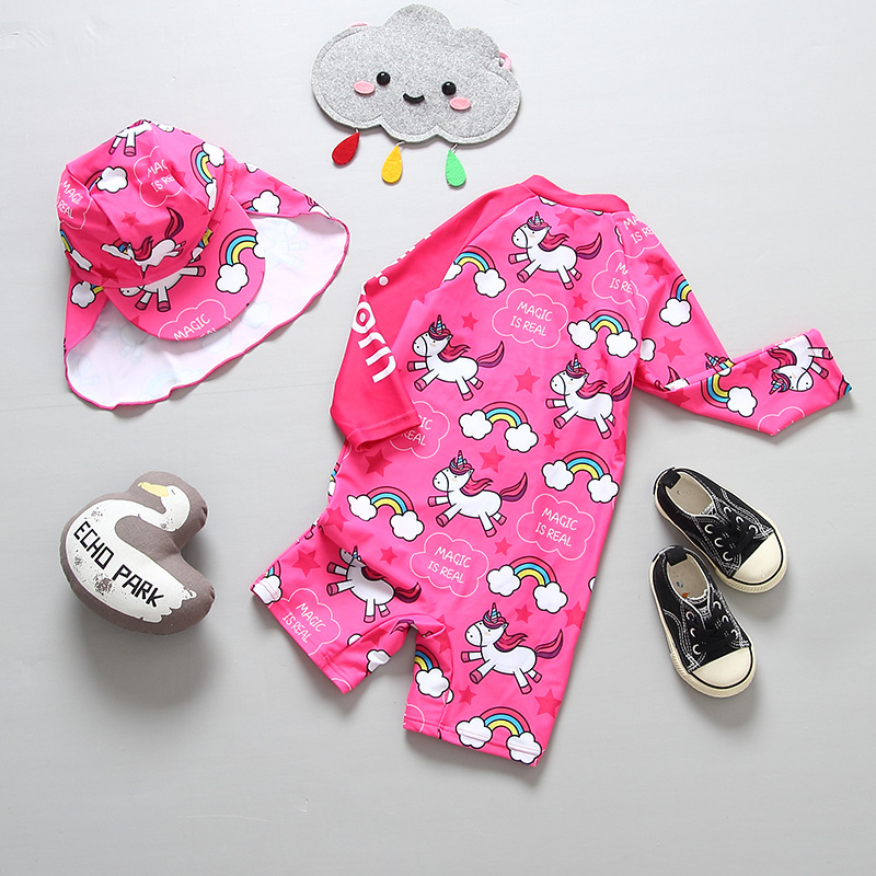 통관 영국 대외 무역 어린이 수영복 여아 아기 세트 어린이 아기 서핑 세트 세트 모자스토어 가기