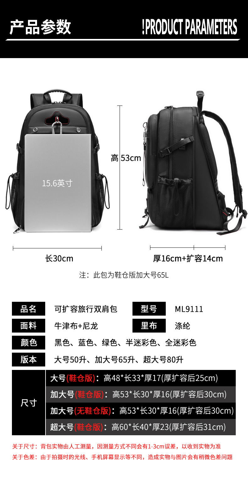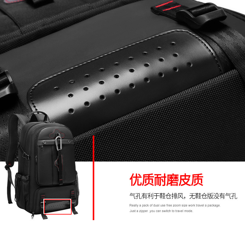 남성용 대용량 방수 도난방지 건식 및 습식 분리 여행 가방 야외 등산 가방