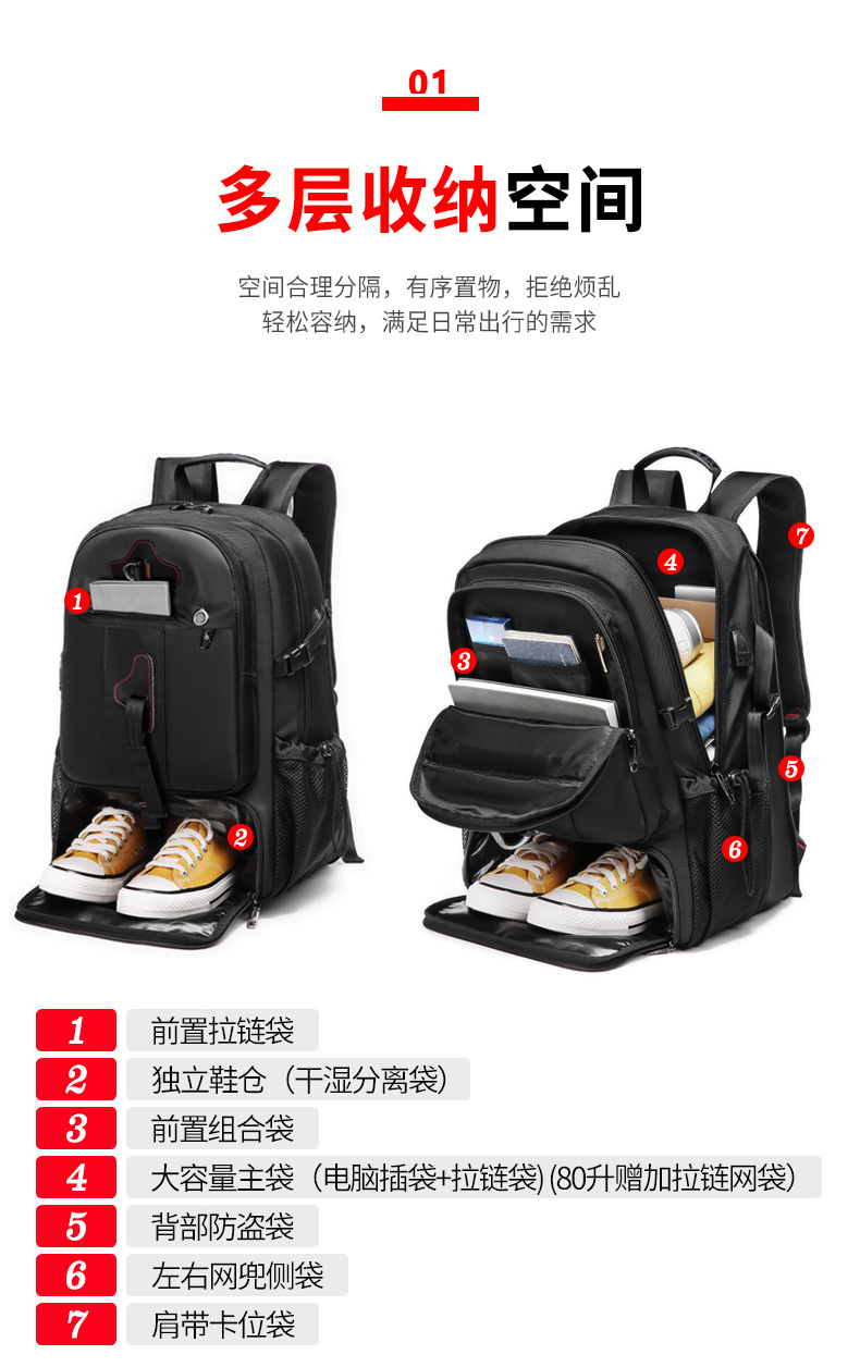 남성용 대용량 방수 도난방지 건식 및 습식 분리 여행 가방 야외 등산 가방스토어 가기