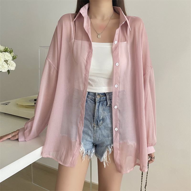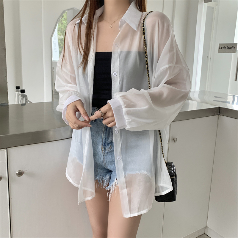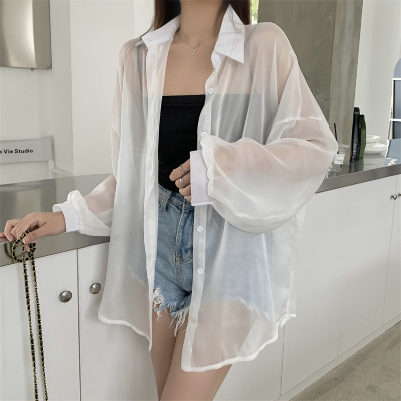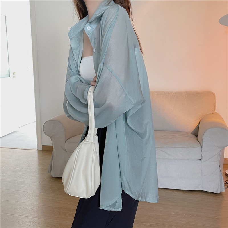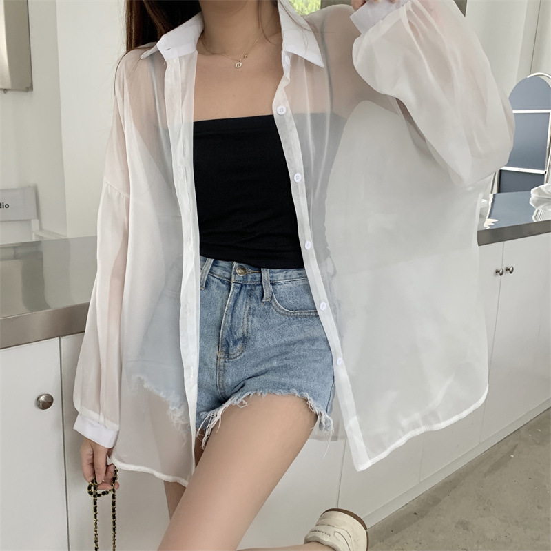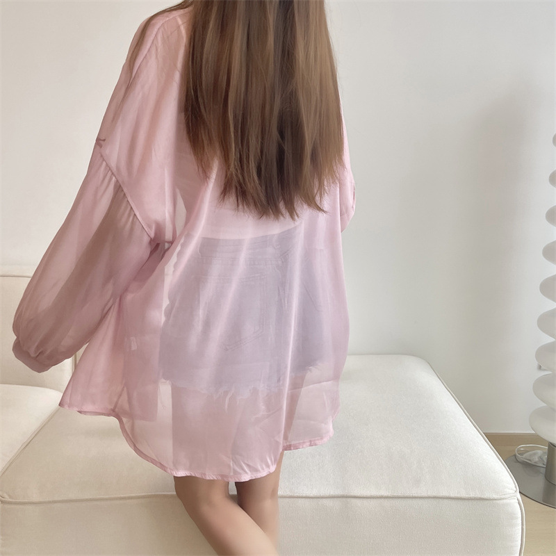 2024 여름 마이크로 시스루 프렌치 셔츠 탑 여름 얇은 재킷 디자인 틈새 긴팔 자외선 차단 가디건의 실제 샷