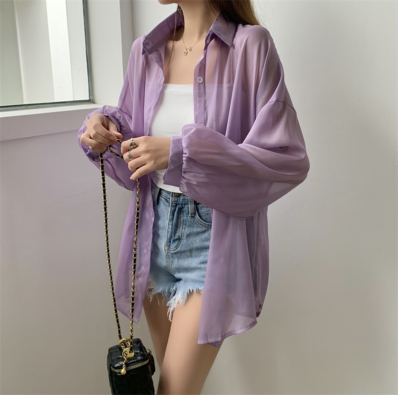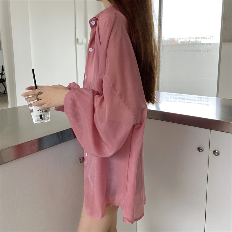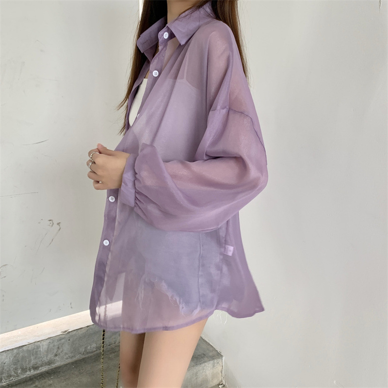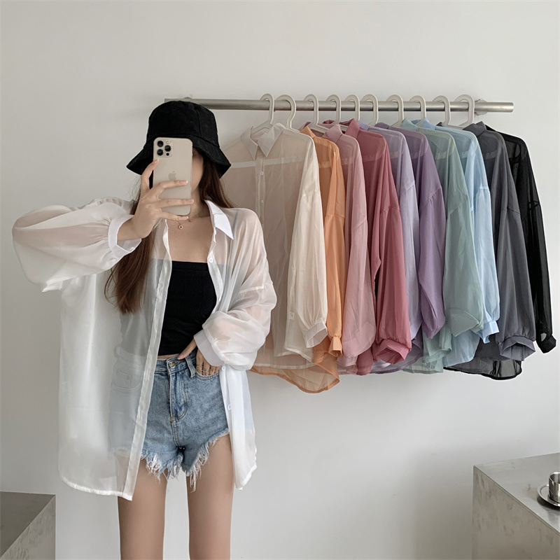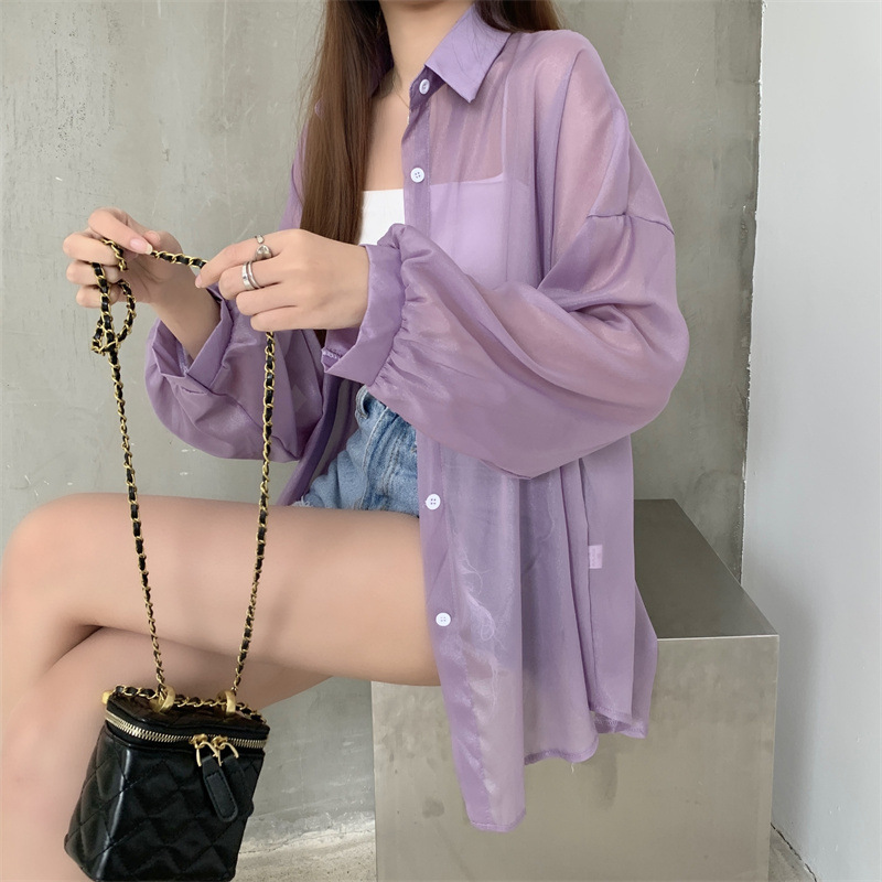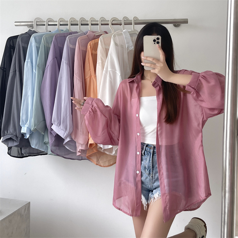 2024 여름 마이크로 시스루 프렌치 셔츠 탑 여름 얇은 재킷 디자인 틈새 긴팔 자외선 차단 가디건의 실제 샷