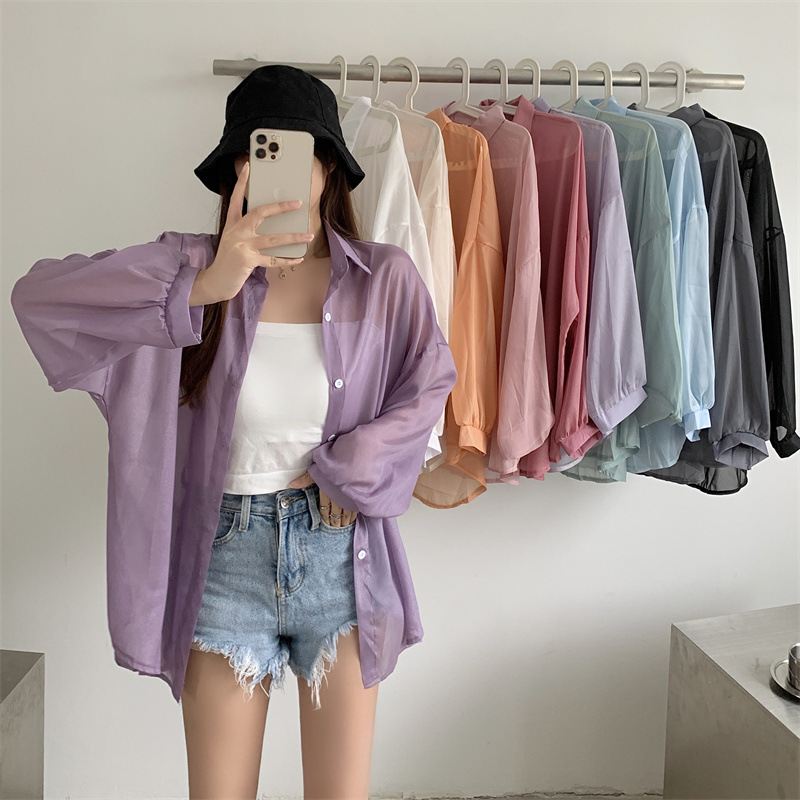 2024 여름 마이크로 시스루 프렌치 셔츠 탑 여름 얇은 재킷 디자인 틈새 긴팔 자외선 차단 가디건의 실제 샷스토어 가기