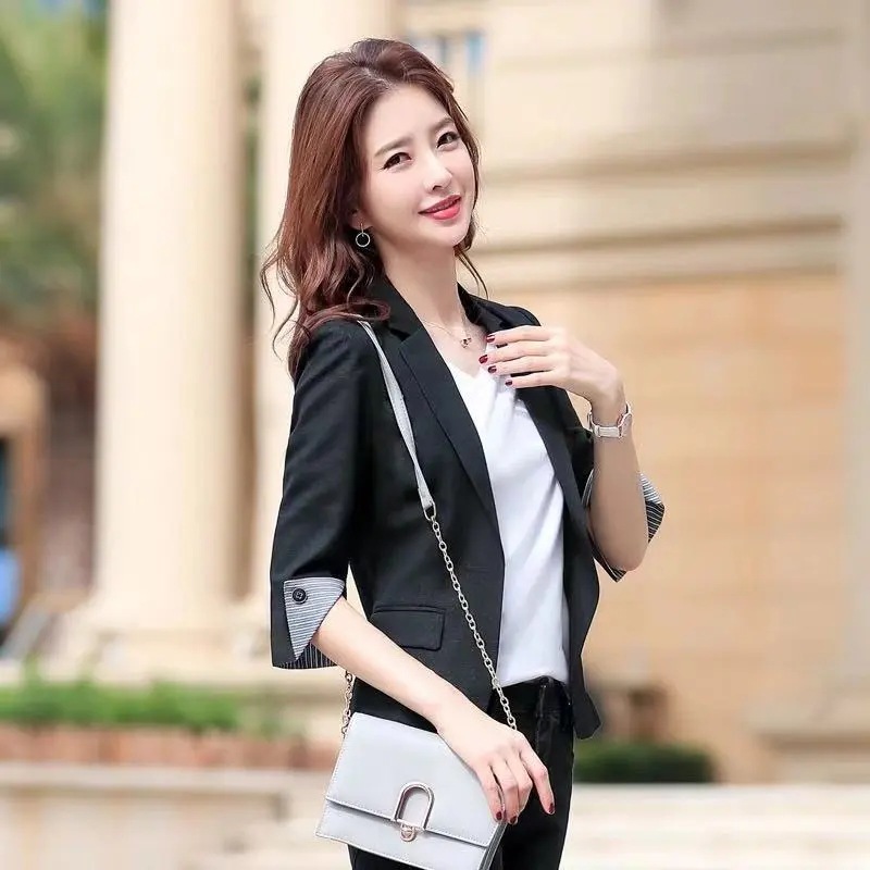 여성용 작은 정장 린넨 재킷, 새로운 한국 스타일, 작은 사이즈, 7부 소매, 얇은, 전문적이고 슬림핏, 패셔너블하고 우아한 정장