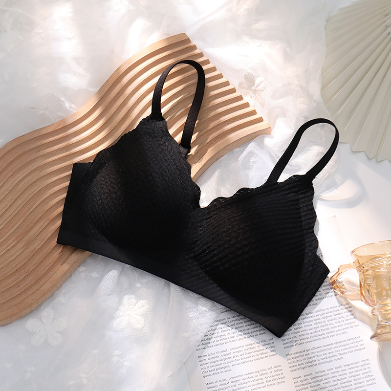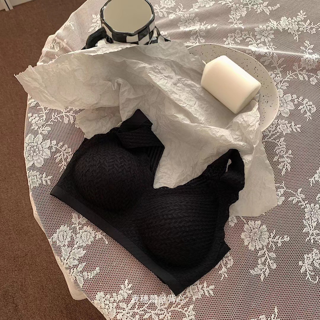레드 밀 귀 작은 슬링 레이스 속옷 여성용 얇은 큰 가슴 작은 가슴 개더링 비 스틸 링 브라