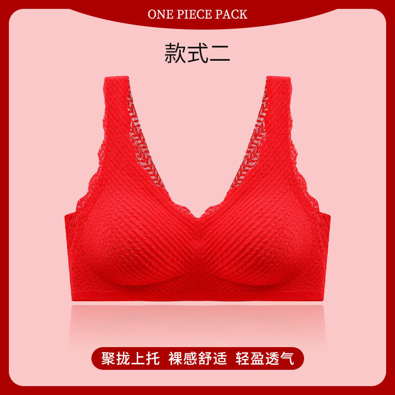 레드 밀 귀 작은 슬링 레이스 속옷 여성용 얇은 큰 가슴 작은 가슴 개더링 비 스틸 링 브라스토어 가기