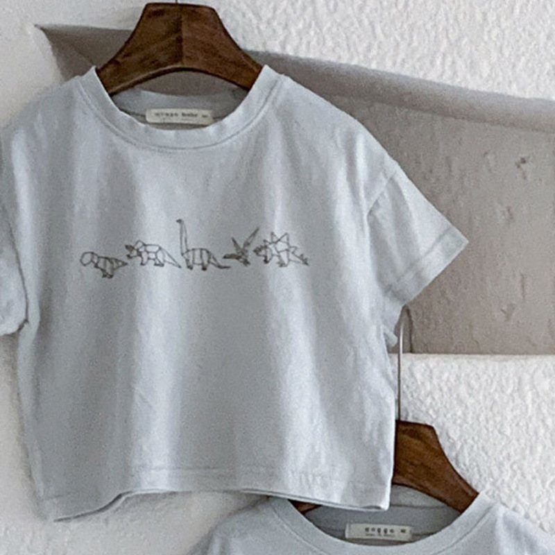 한국식 여름 아기와 유아 간단한 서양식 공룡 반팔 티셔츠 아기 느슨한 편안한 캐주얼 기본 셔츠 아동 의류스토어 가기