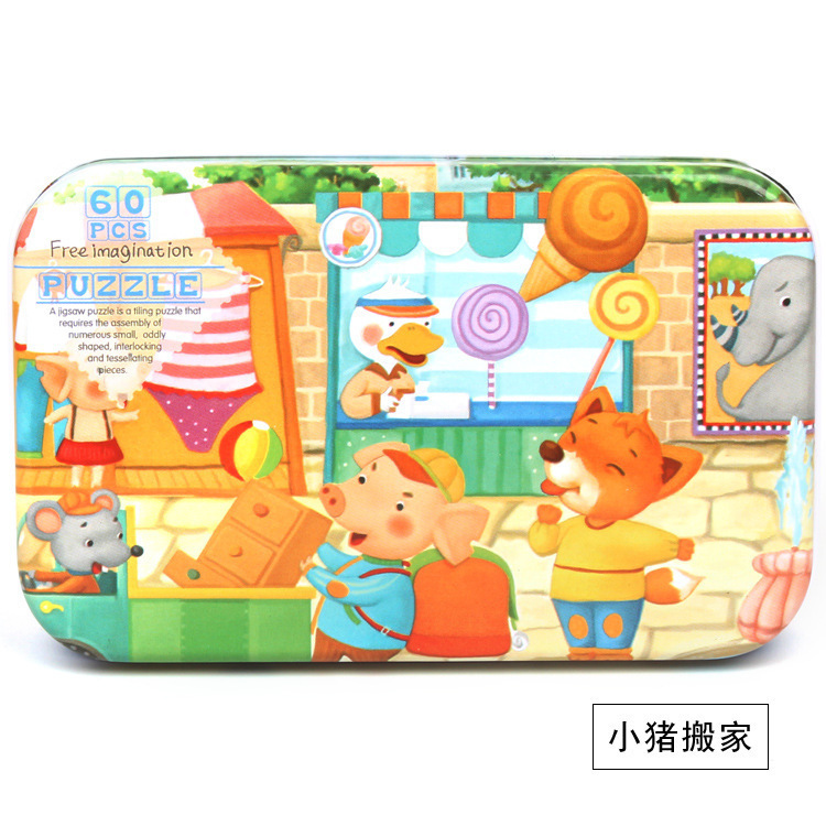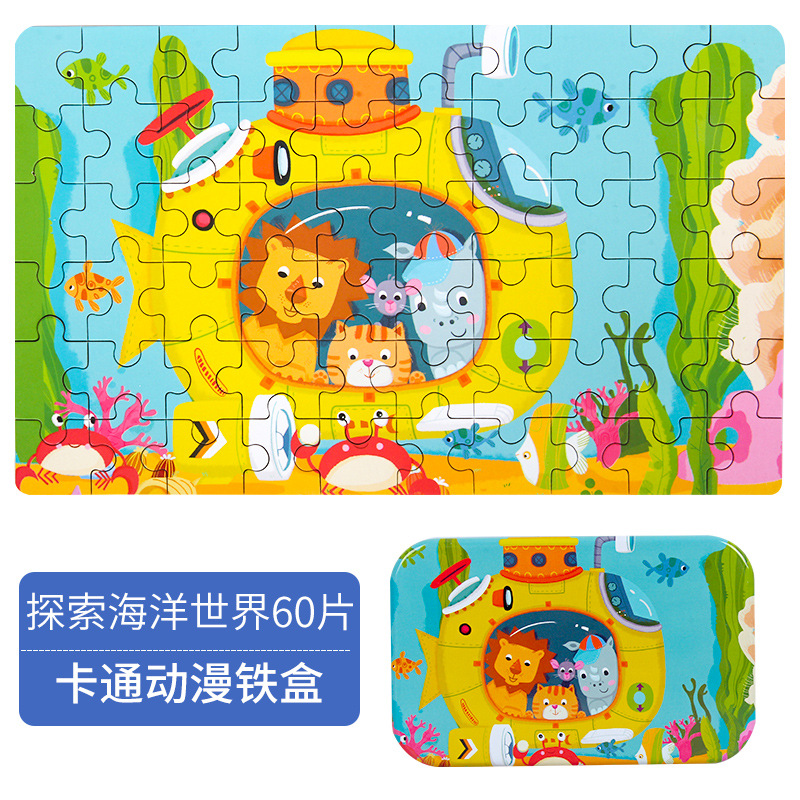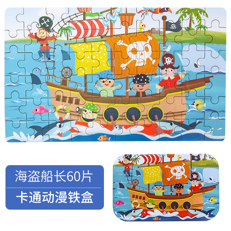 철 상자 나무 퍼즐 애니메이션 만화 비행기 퍼즐 어린이 조기 교육 교육 완구 제조 업체 60 개 도매스토어 가기