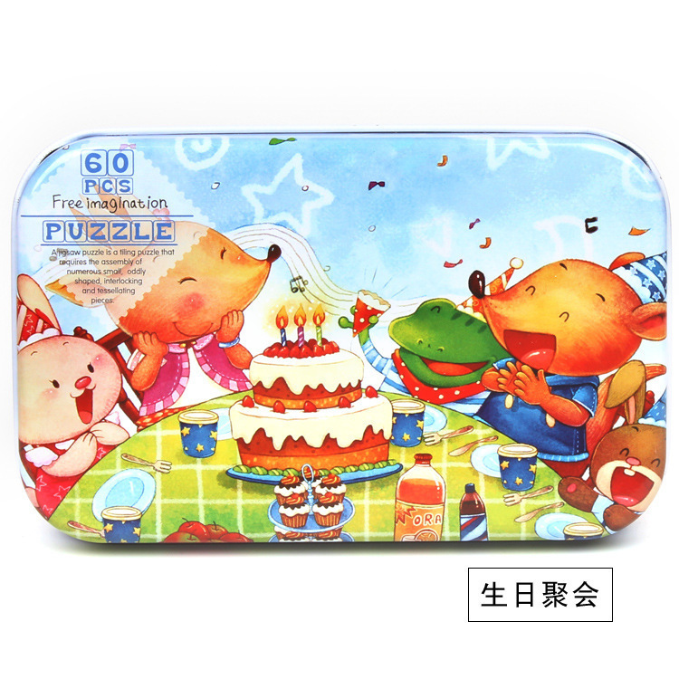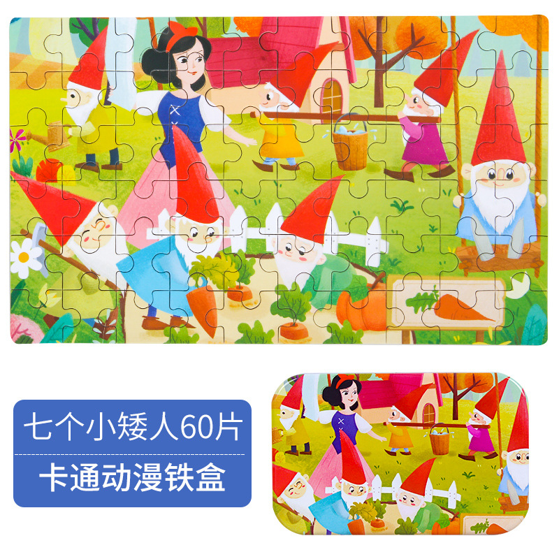 철 상자 나무 퍼즐 애니메이션 만화 비행기 퍼즐 어린이 조기 교육 교육 완구 제조 업체 60 개 도매